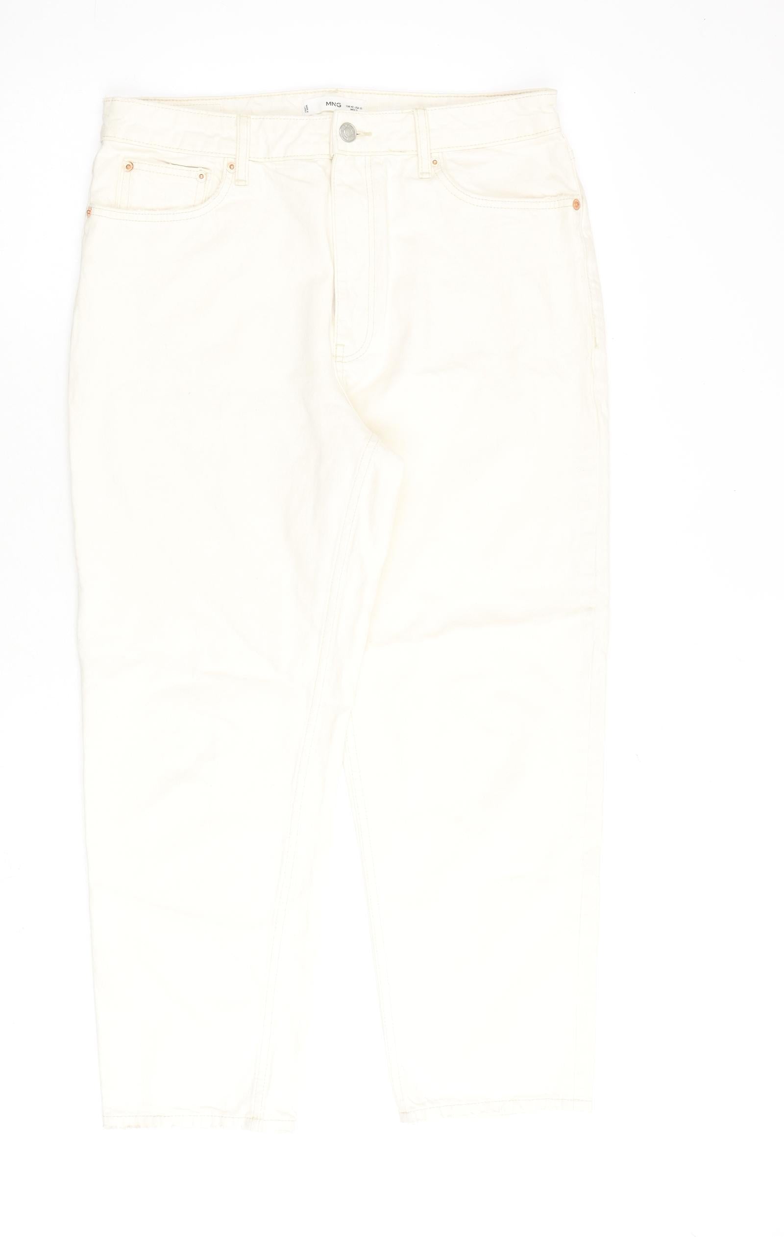 Mango Womens Beige Cotton Mom Jeans Size 16 L27 in Regular Zip