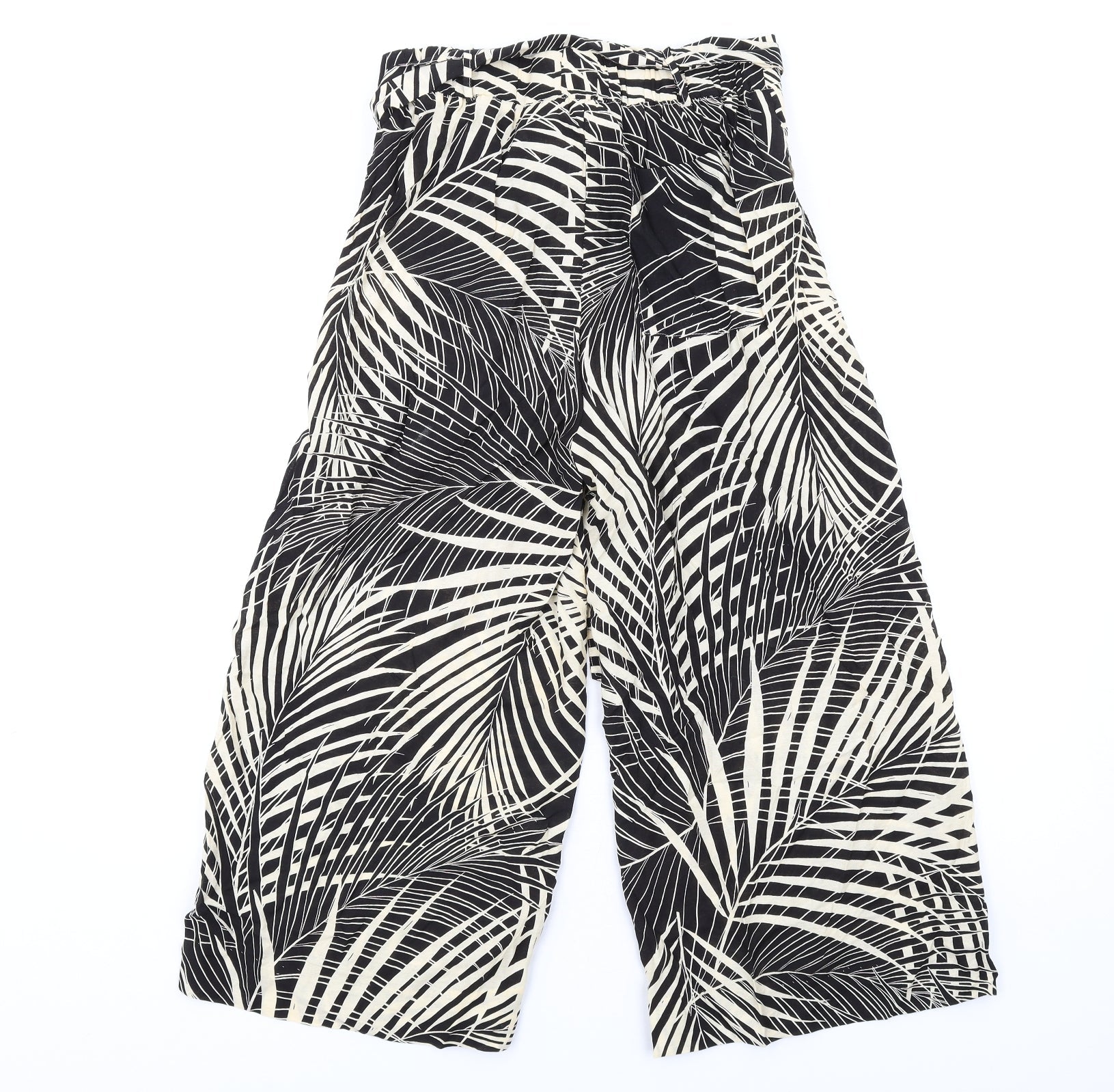 Mango Womens Beige Geometric Viscose Trousers Size S L25 in Regular Zip