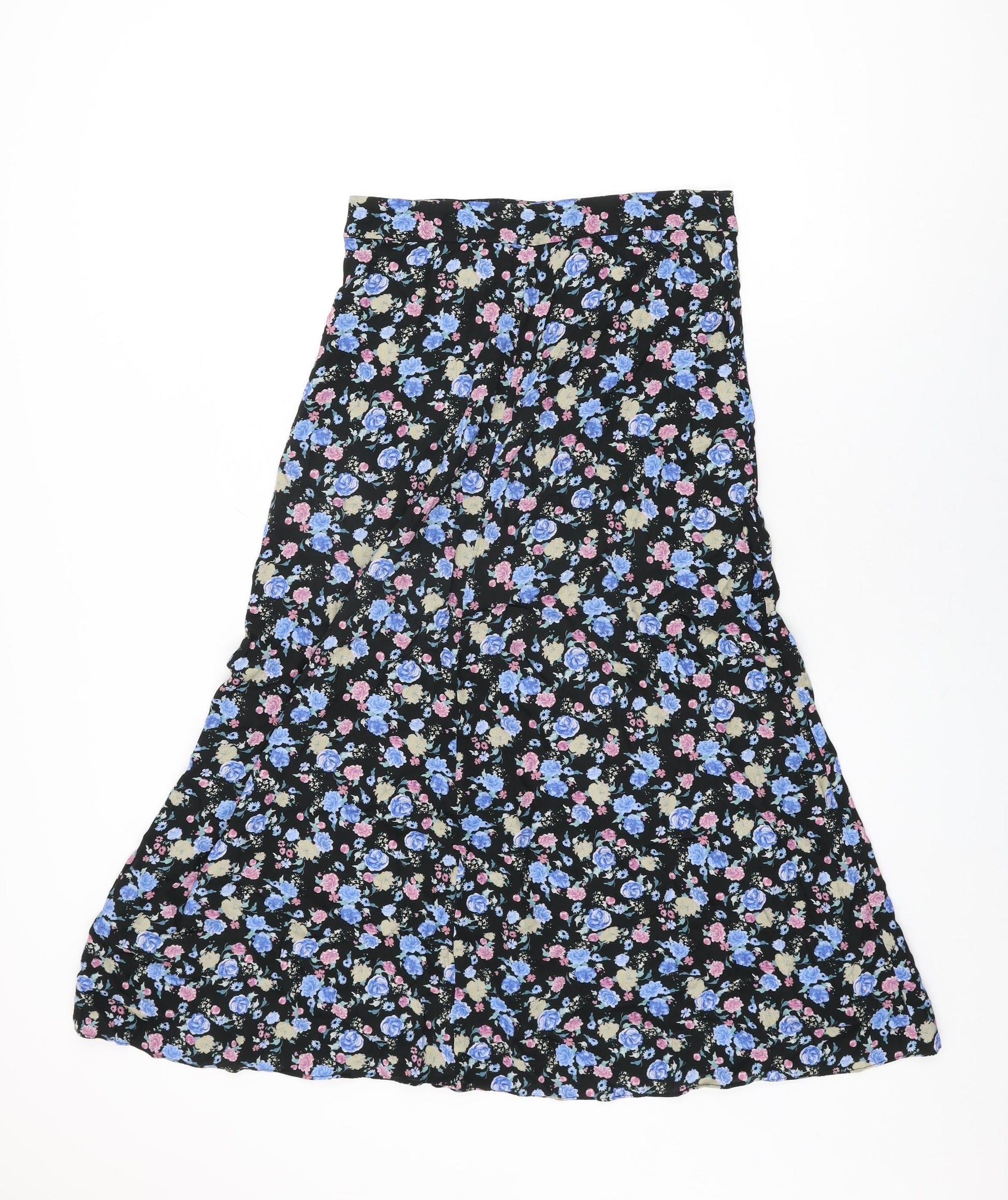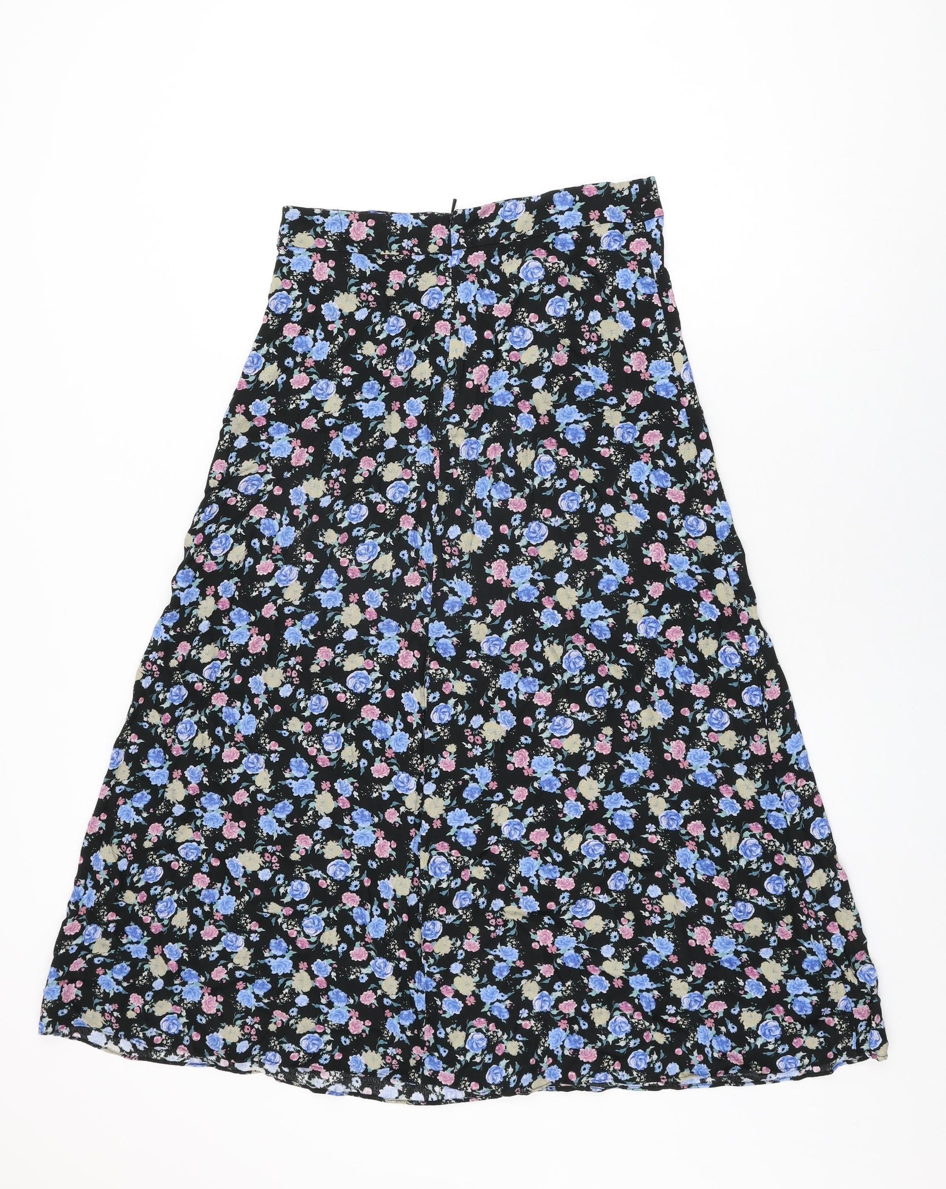 Mango Womens Black Floral Viscose Swing Skirt Size M Zip