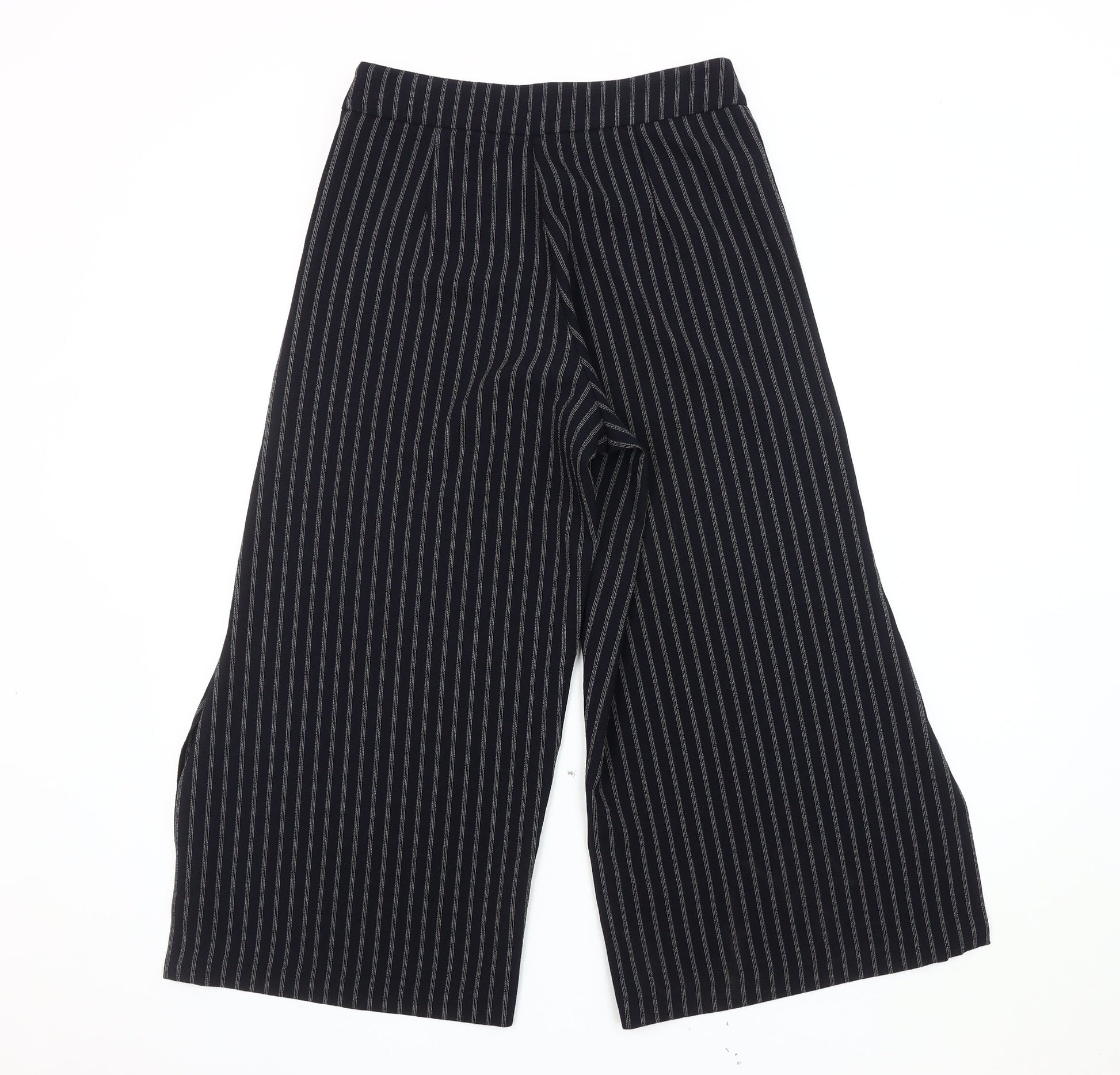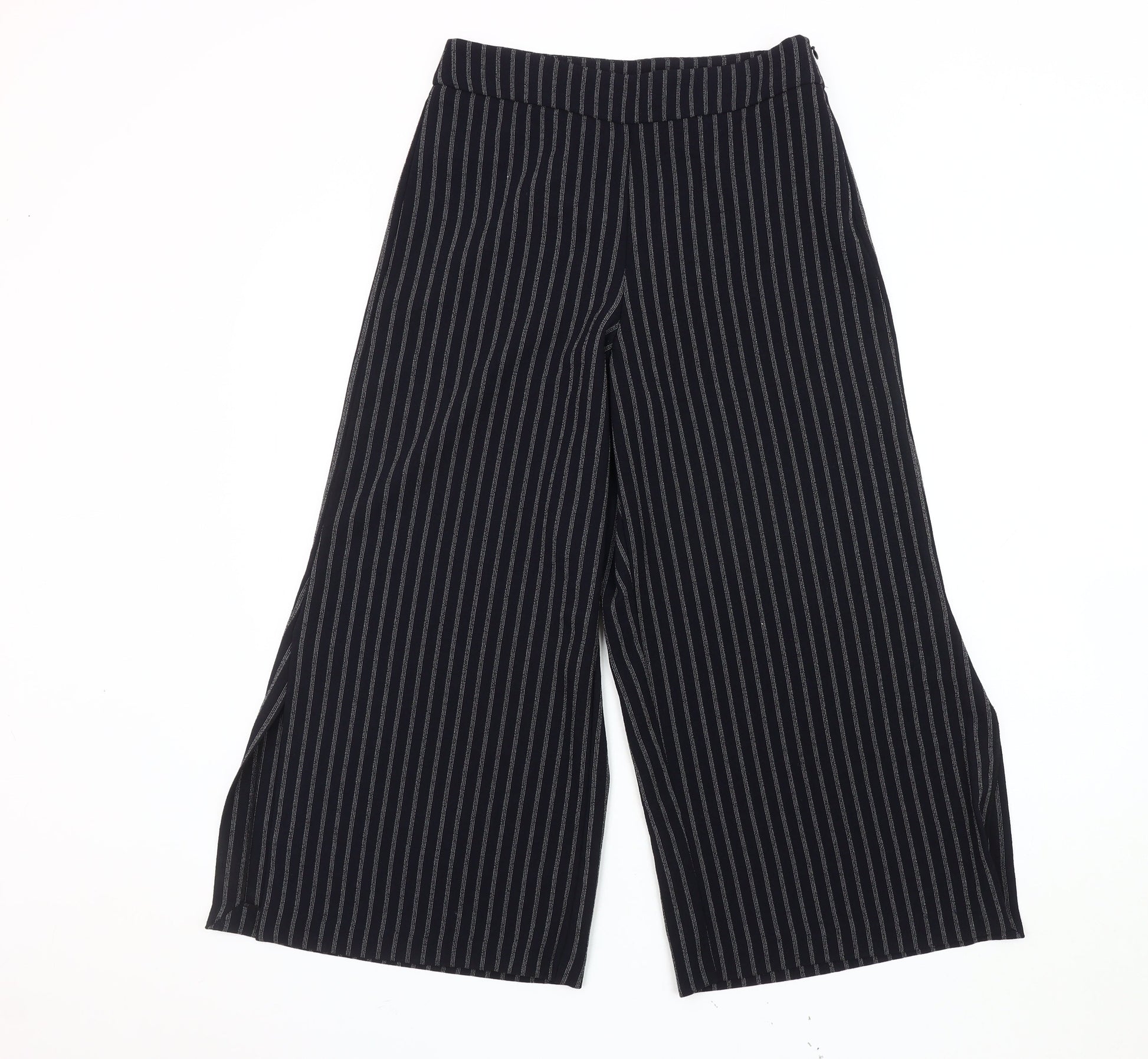 Mango Women's Black Striped Wide-Leg Trousers Size 8