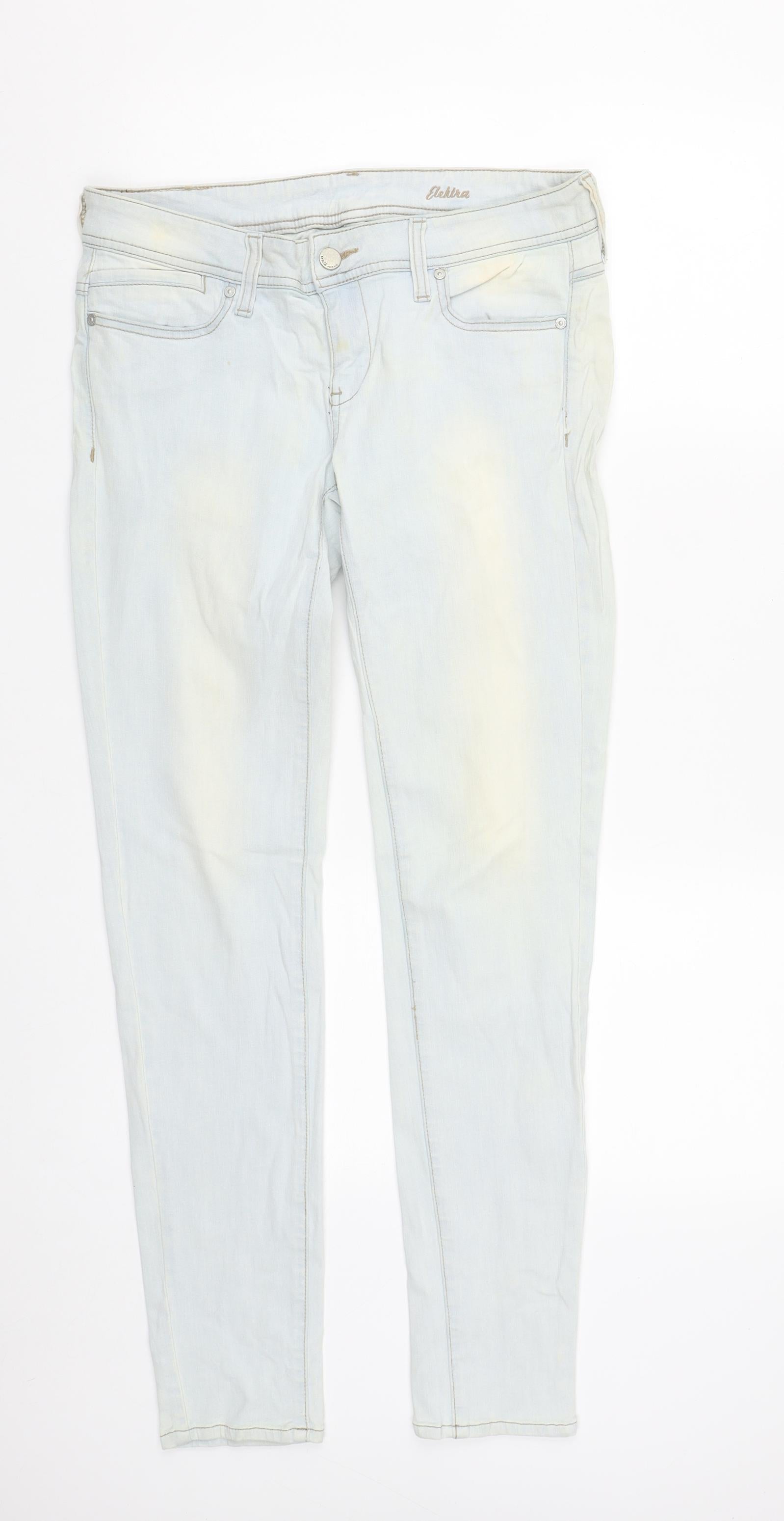 Mango Womens Blue Cotton Straight Jeans Size 10 L30 in Regular Zip