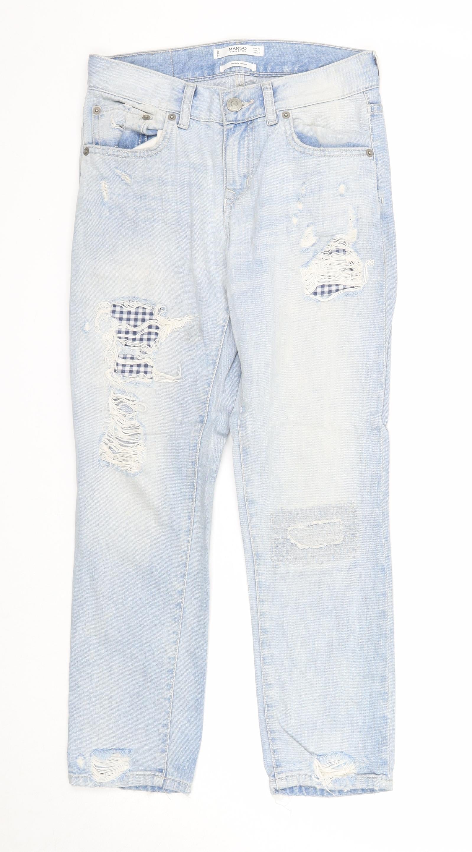 Mango Womens Blue Cotton Straight Jeans Size 4 Regular Zip