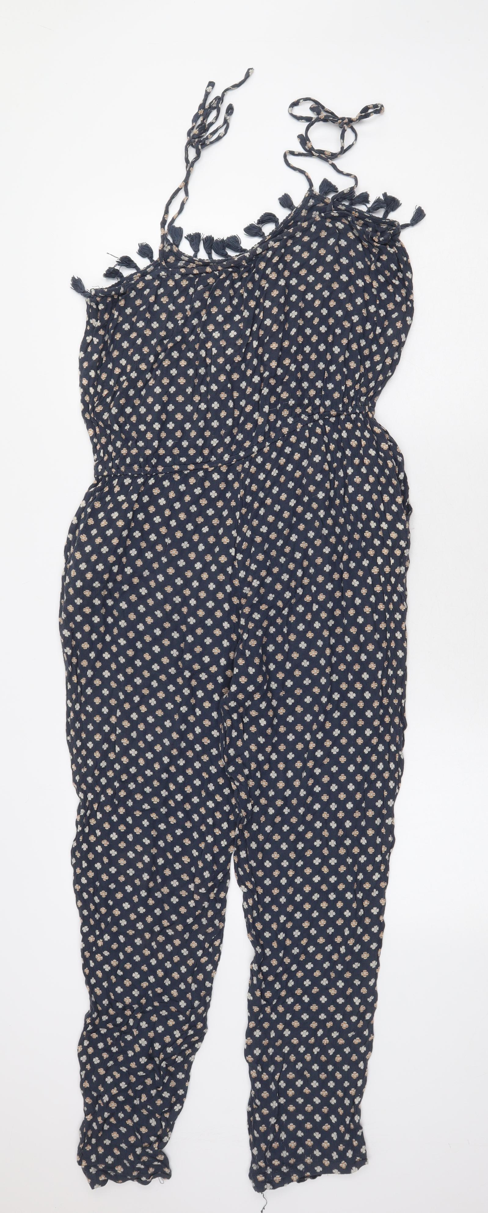 Mango Womens Blue Geometric Cotton Jumpsuit One-Piece Size S Pullover