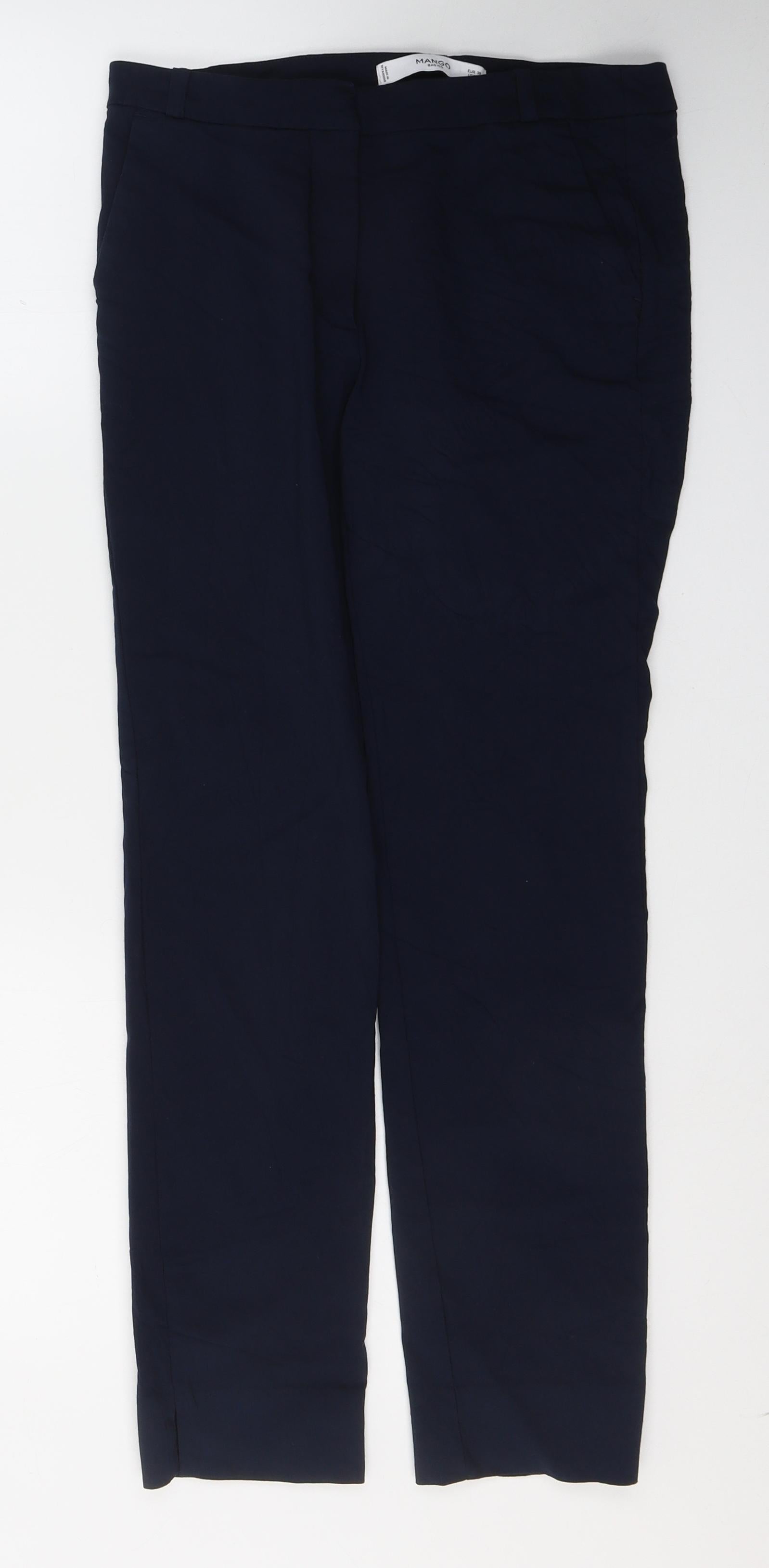 Mango Womens Blue Polyester Cropped Trousers Size 10 L26 in Regular Button
