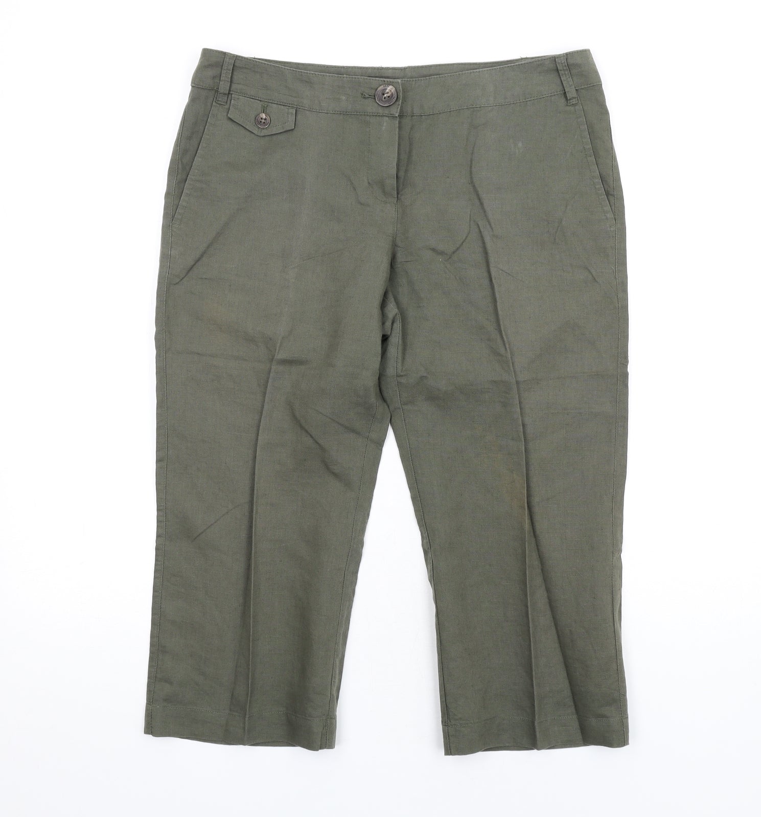 Mango Womens Green Linen Capri Trousers Size 12 L20 in Regular Zip