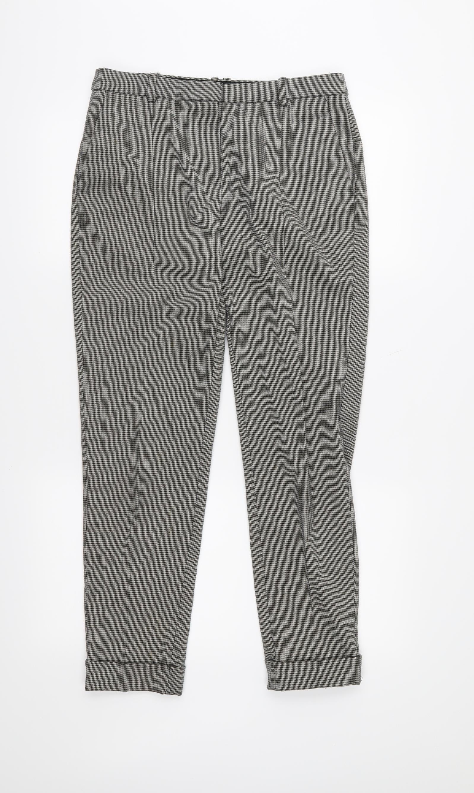Mango Womens Grey Houndstooth Cropped Trousers Size 8 L27 in