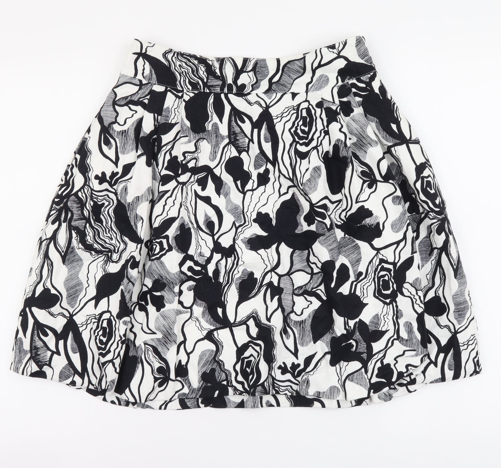 Mango Womens Multicoloured Geometric Cotton Flare Skirt Size M Zip