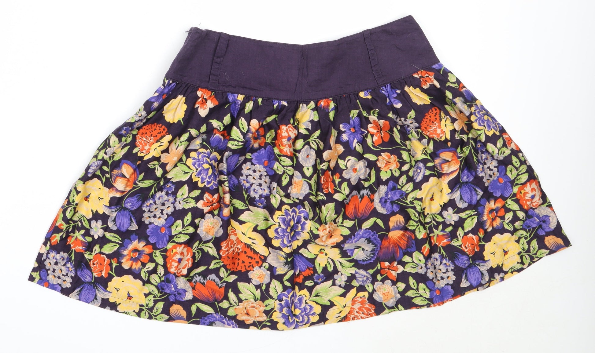 Mango Womens Purple Floral Cotton Flare Skirt Size 40