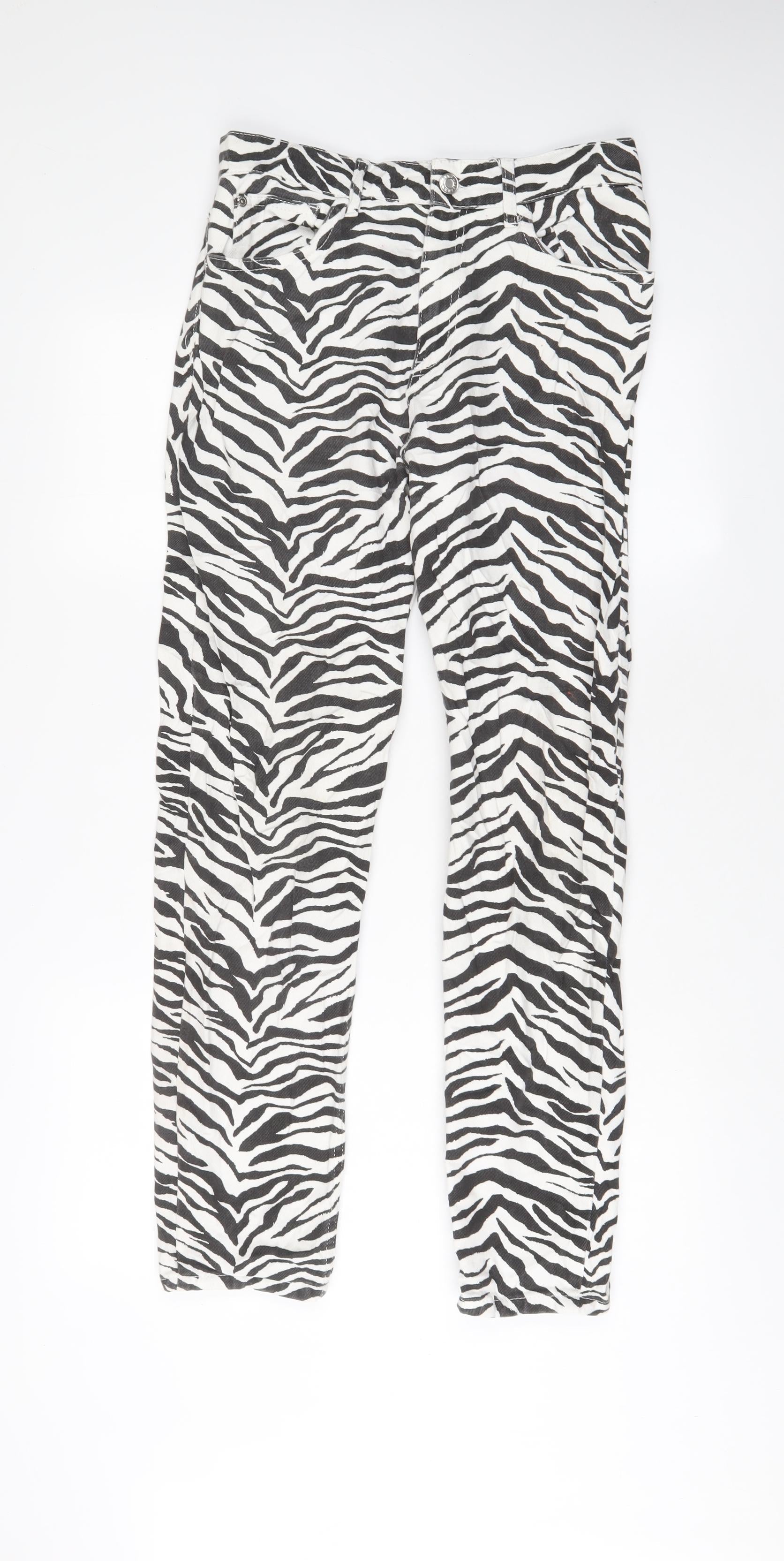 Mango Womens White Animal Print Cotton Straight Jeans Size 10 L30 in Regular Zip