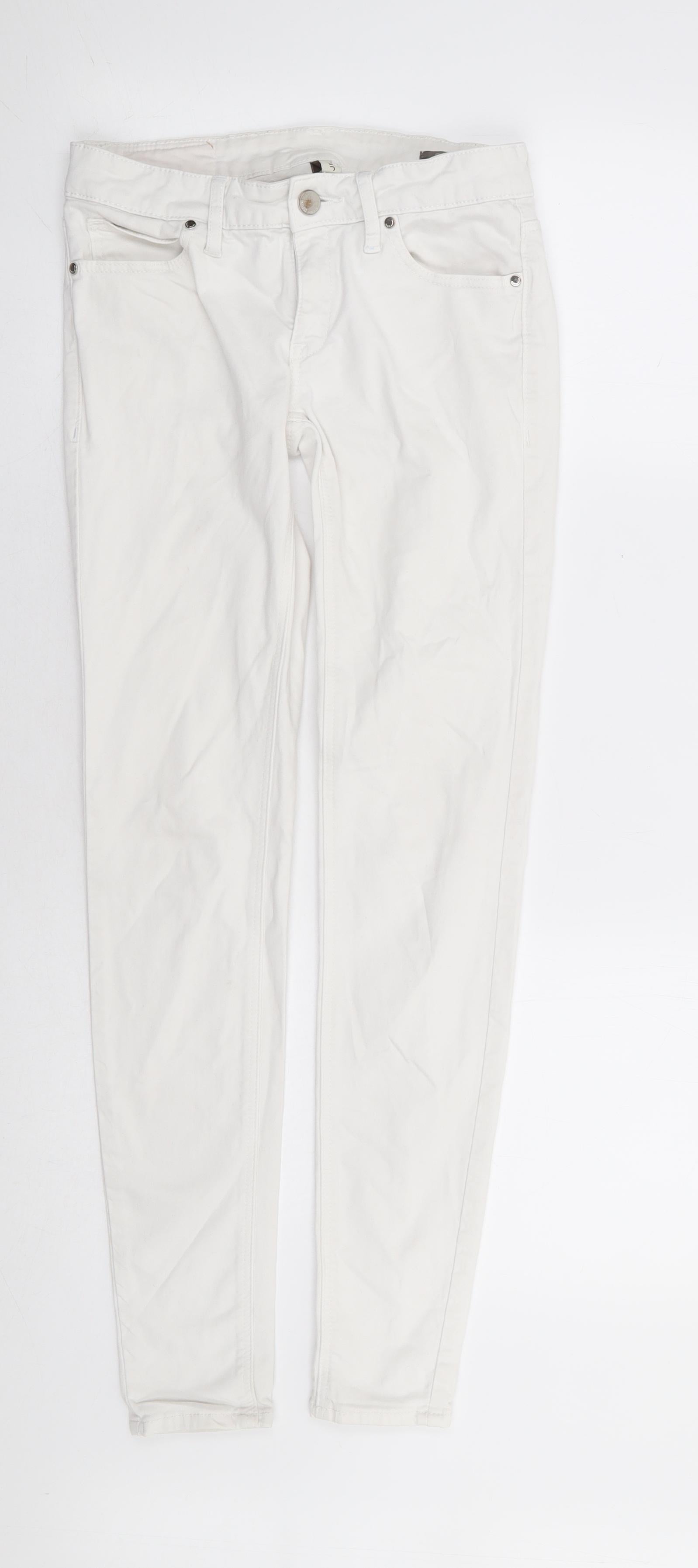 Mango Womens White Cotton Skinny Jeans Size 6 L29 in Extra-Slim Zip