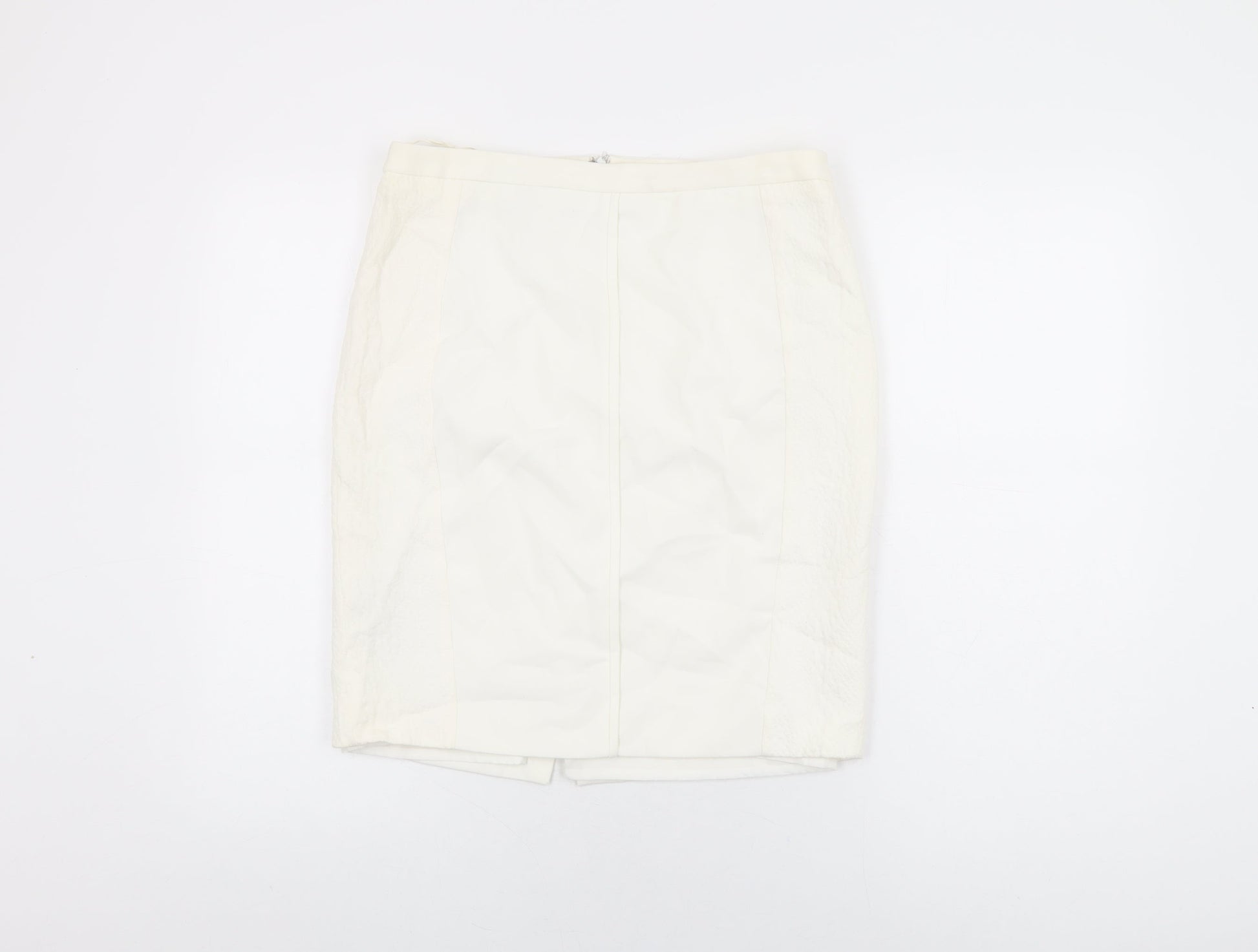 Mango Womens White Polyester Straight & Pencil Skirt Size 12 Zip