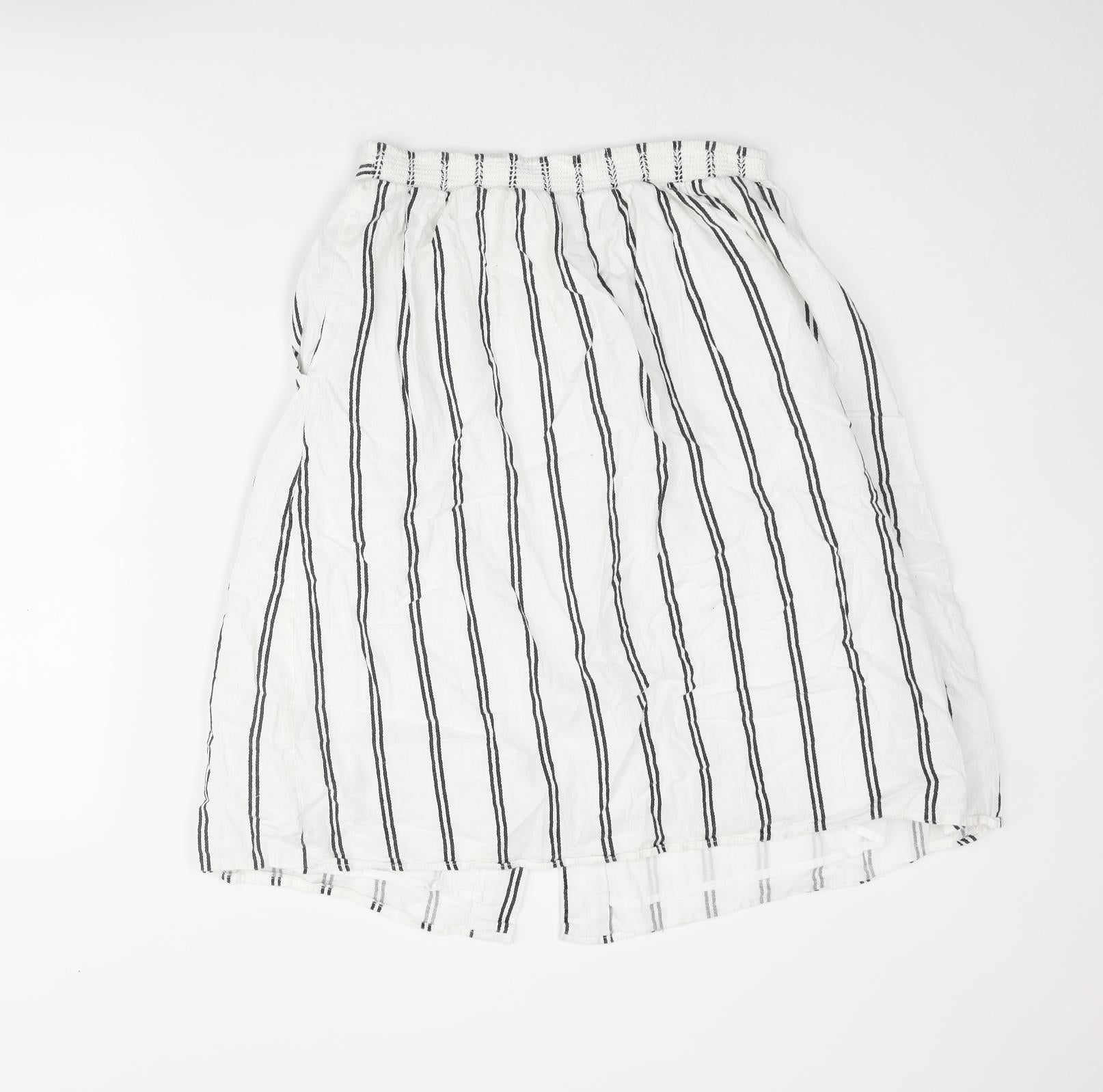 Mango Womens White Striped Cotton A-Line Skirt Size M - Front Vent
