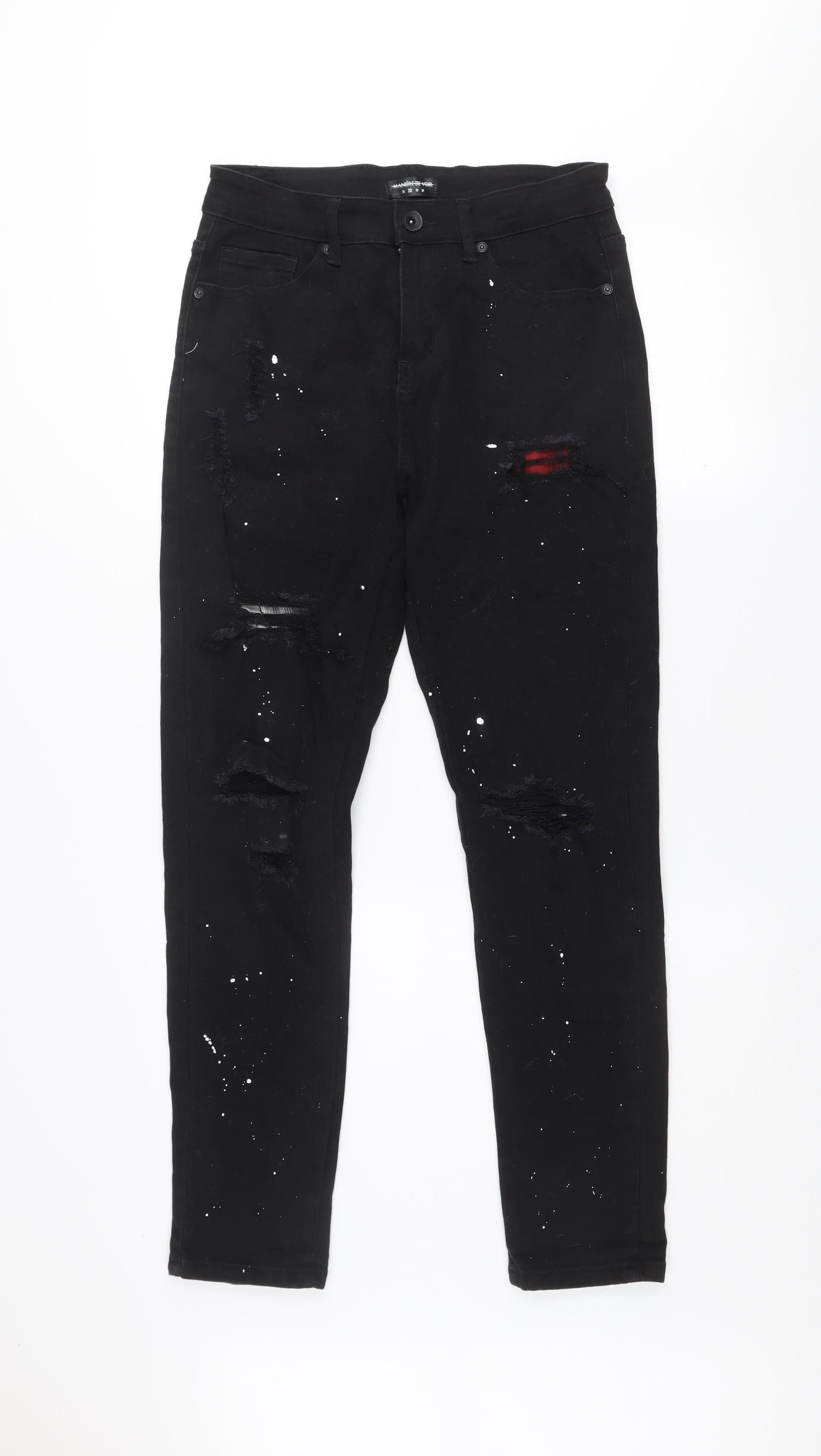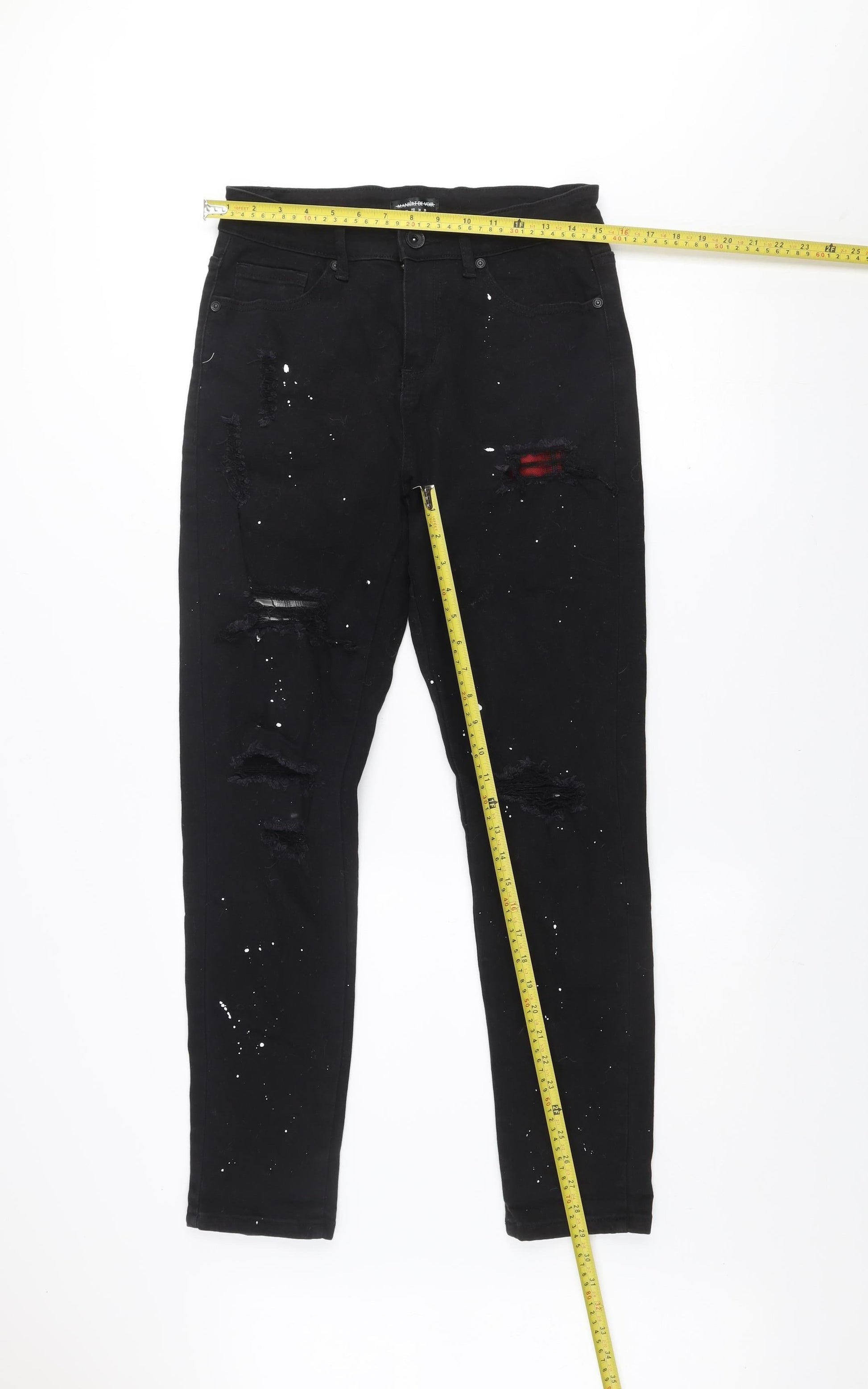 Manière De Voir Men's Black Slim Fit Distressed Skinny Jeans 32W 34L
