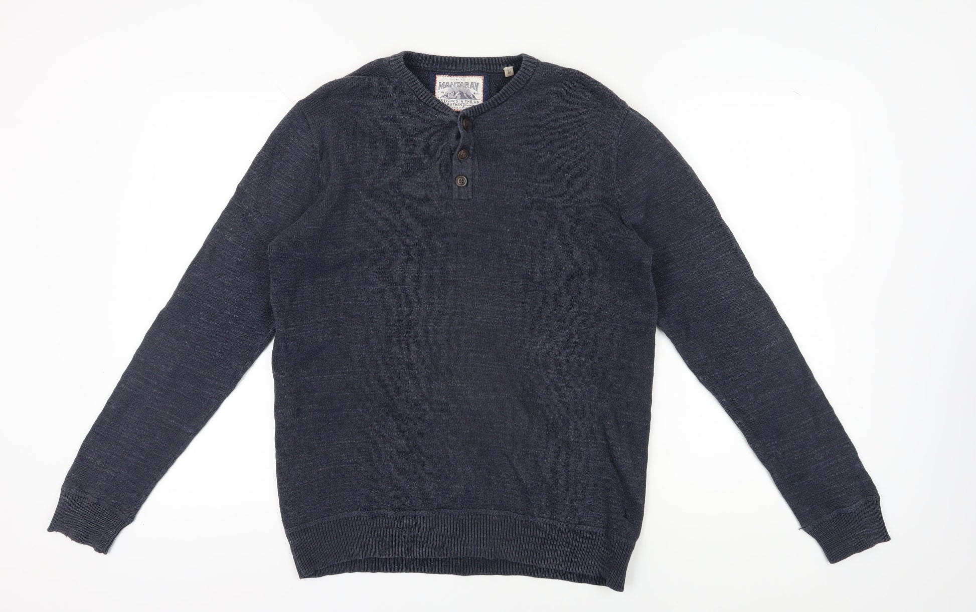 Mantaray Men's Blue Henley Jumper, Size M, Casual Knit