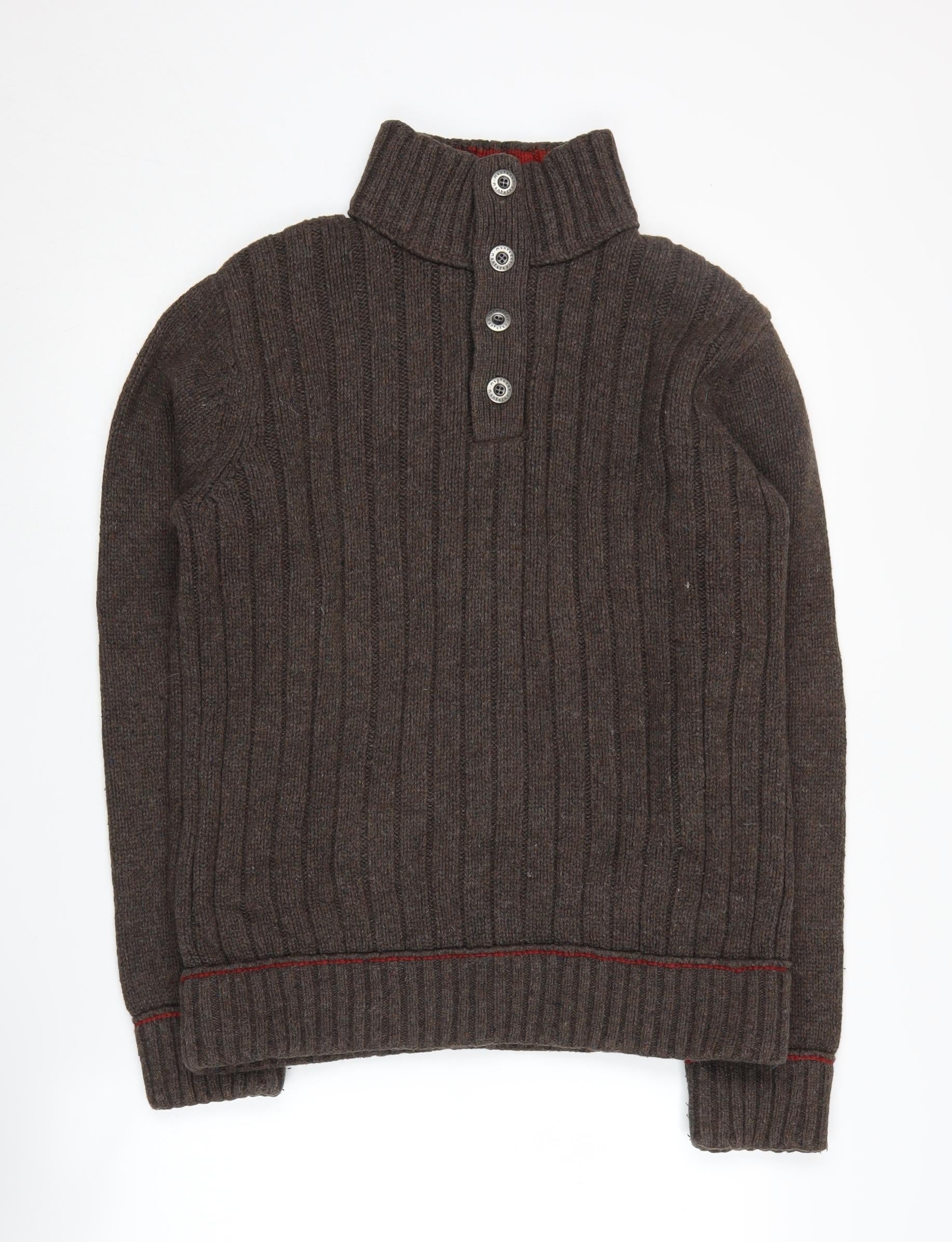 Mantaray Men's Brown Henley Jumper, Long Sleeve
