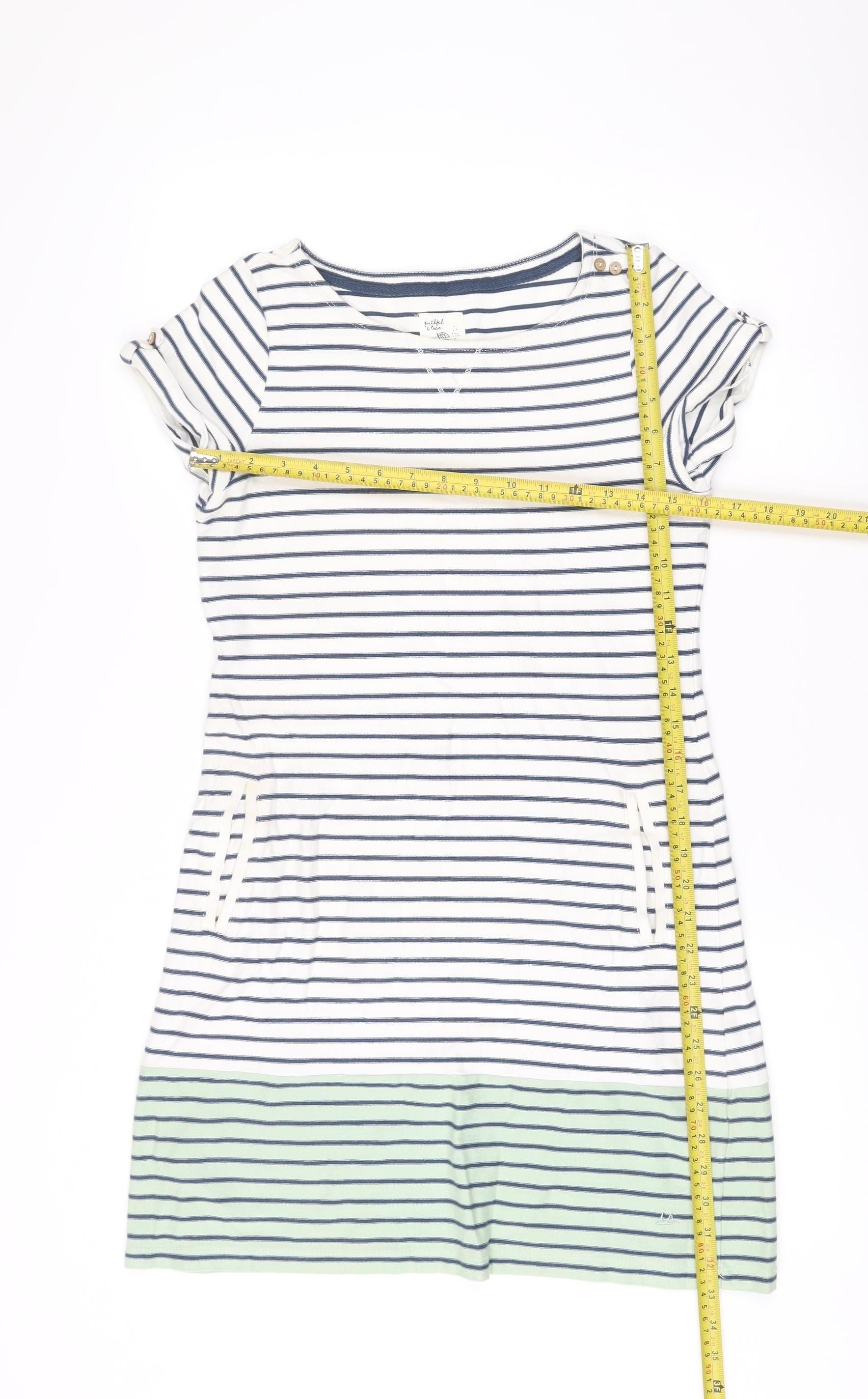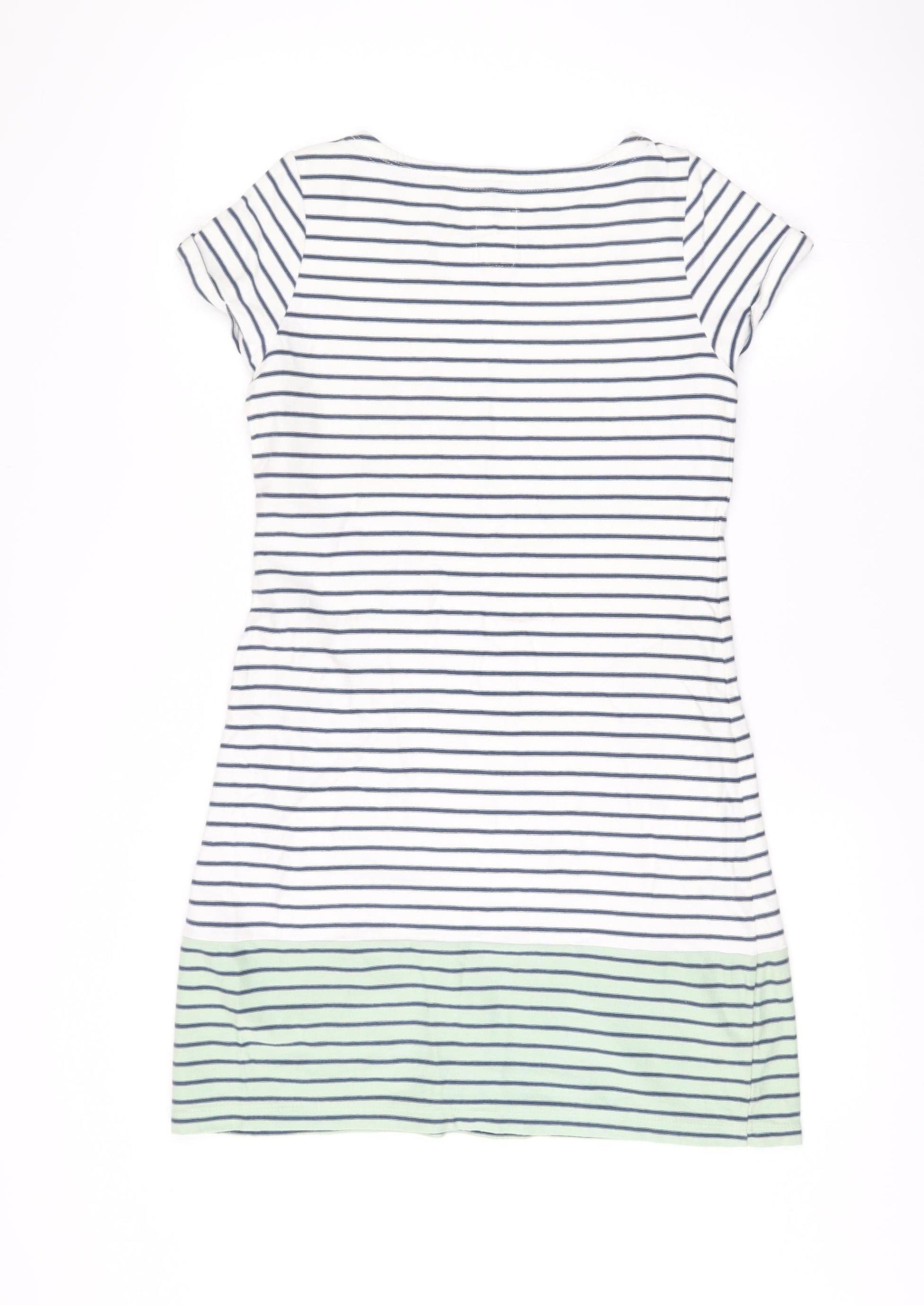 Mantaray Women’s White Blue Green Striped Cotton Shift Dress Size 10