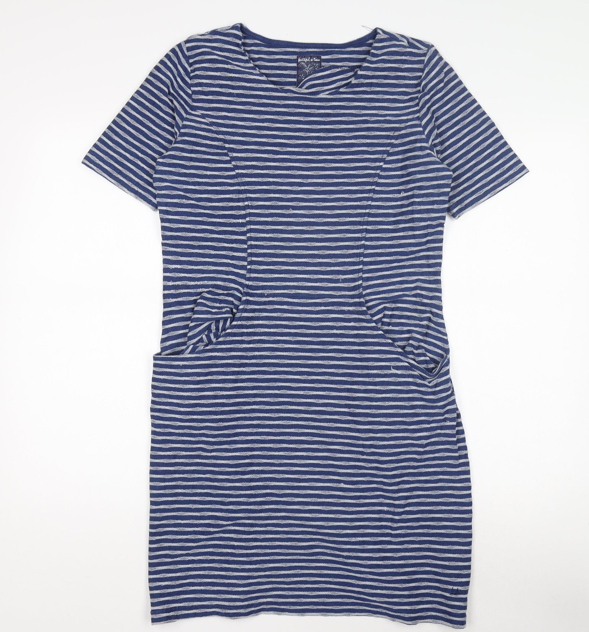 Mantaray Women's Blue Striped Shift Dress Size 10