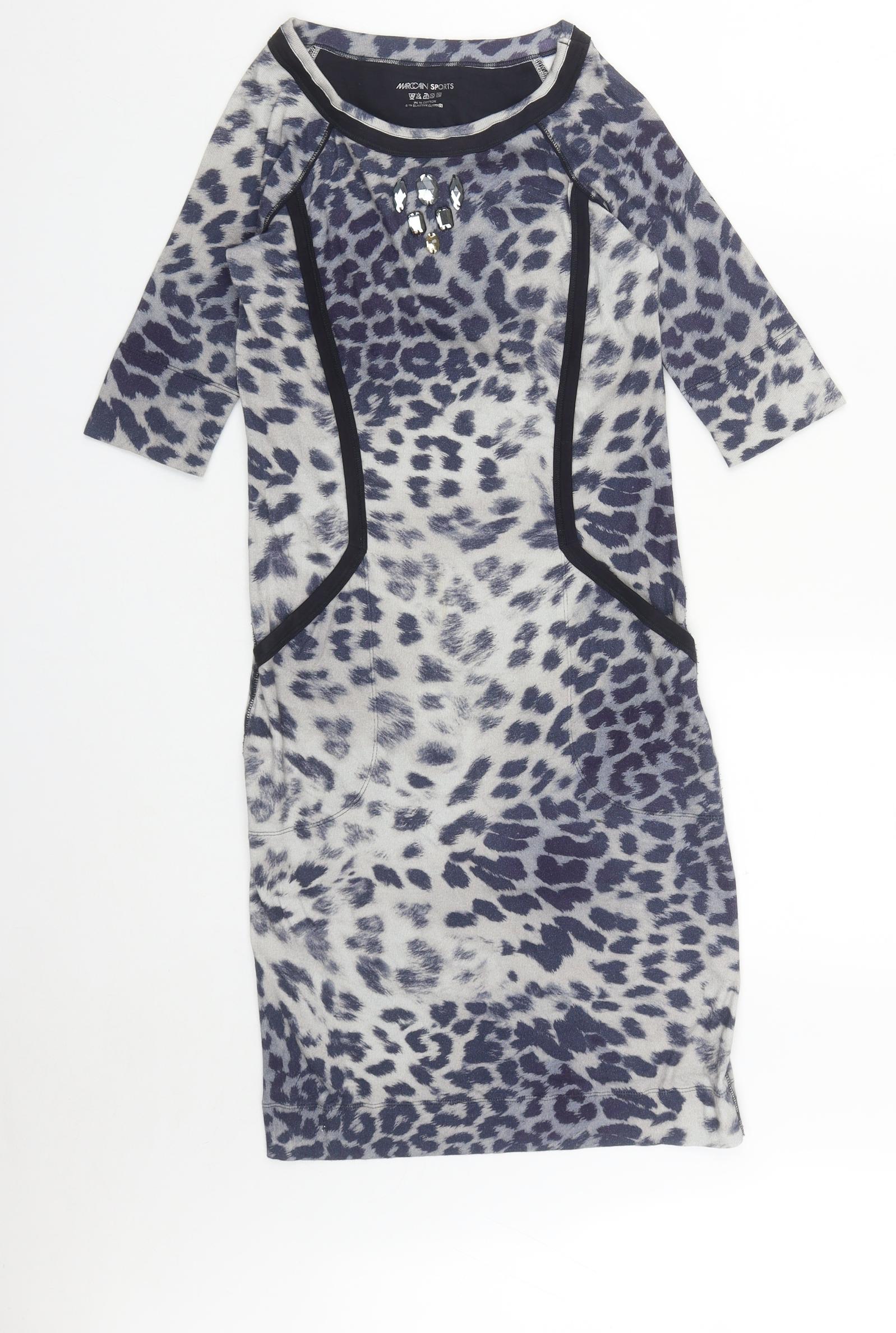 Marc Cain Womens Blue Geometric Cotton Bodycon Size S Round Neck