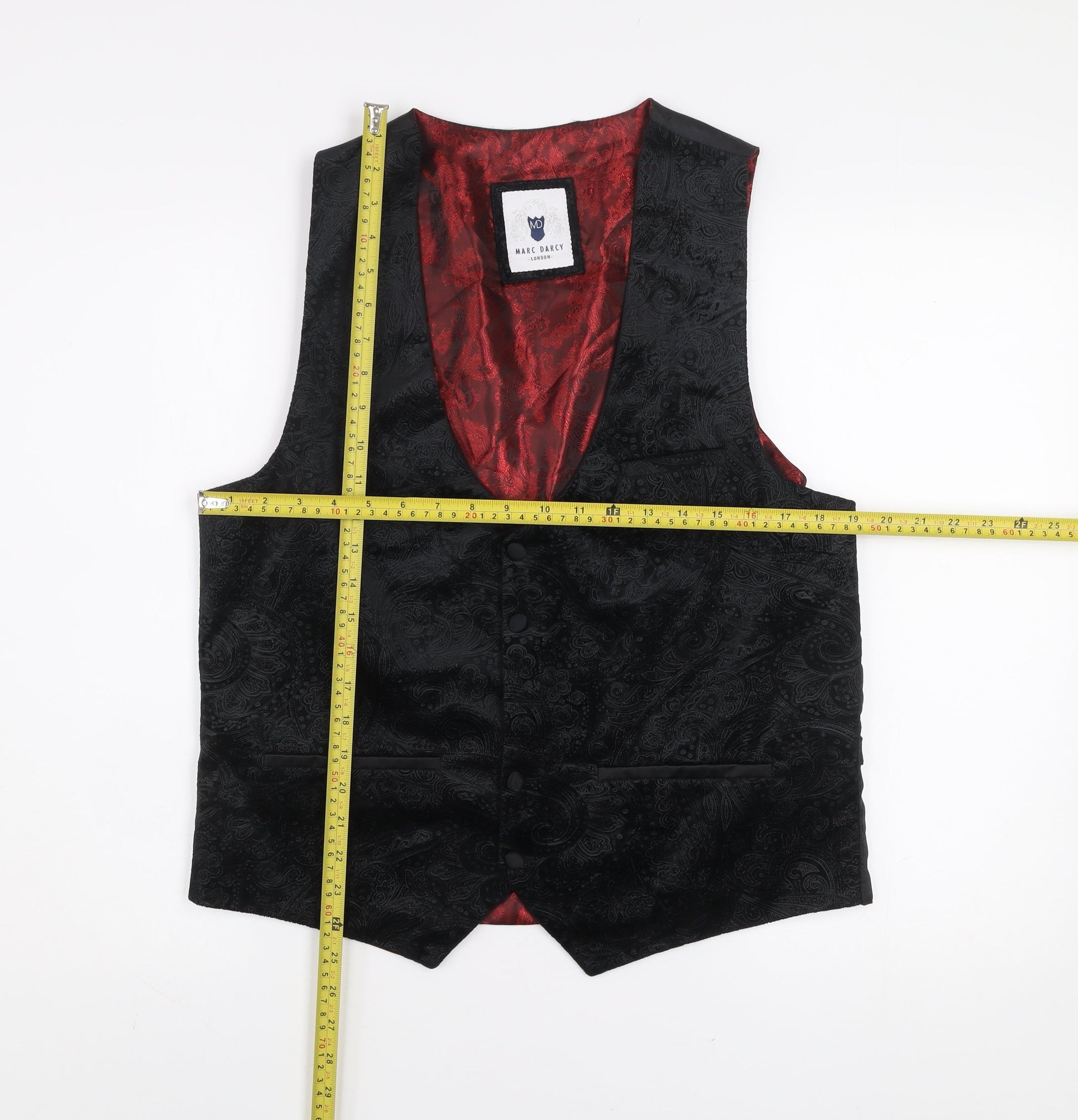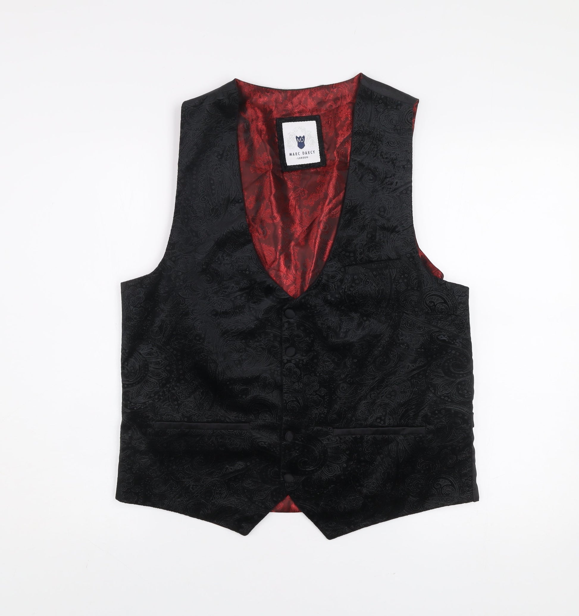 Marc Darcy Men's Black Paisley Polyester Waistcoat Size 42 Regular Fit