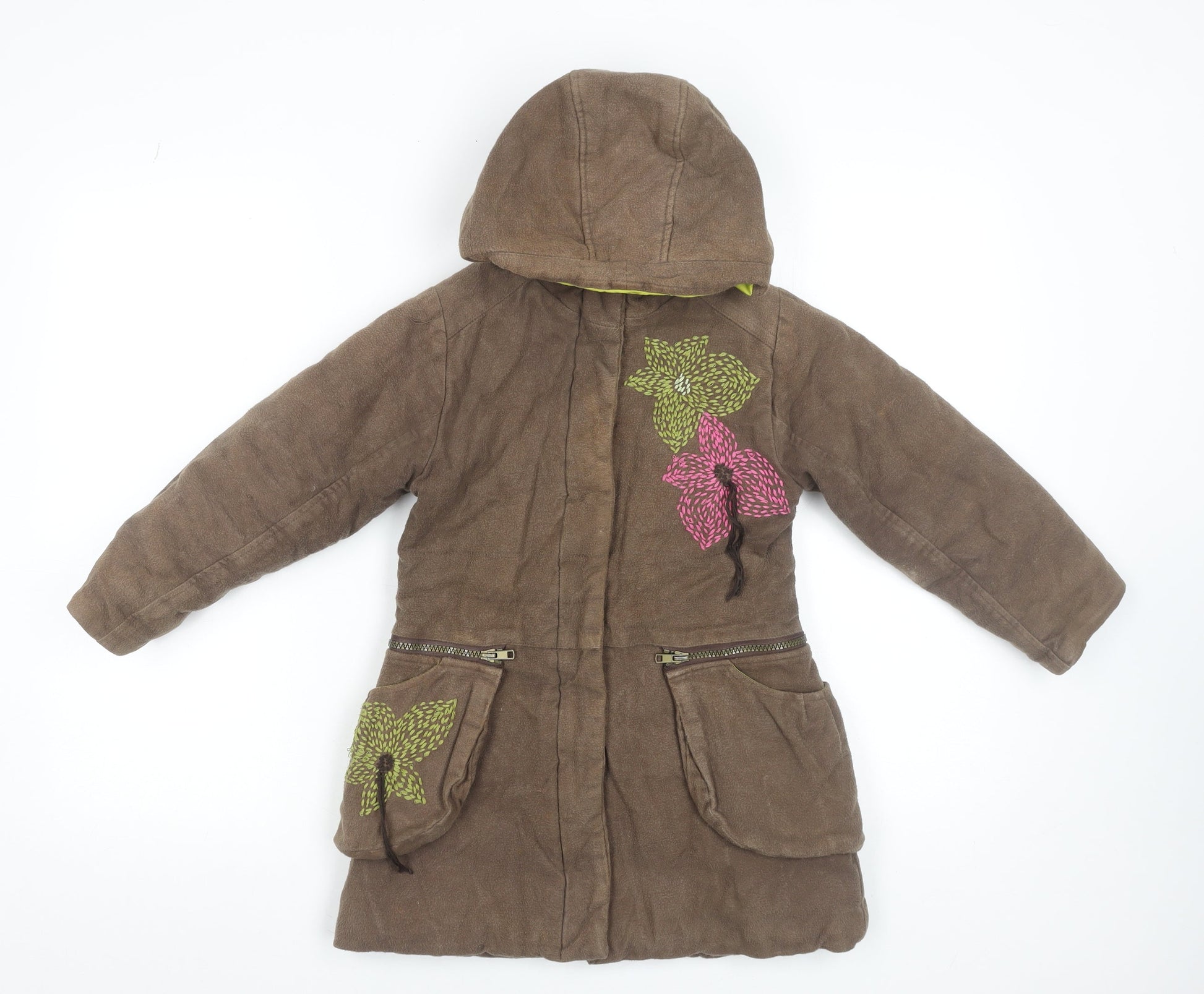 Marèse Girls Brown Floral Hooded Cotton Parka Coat 6 Years