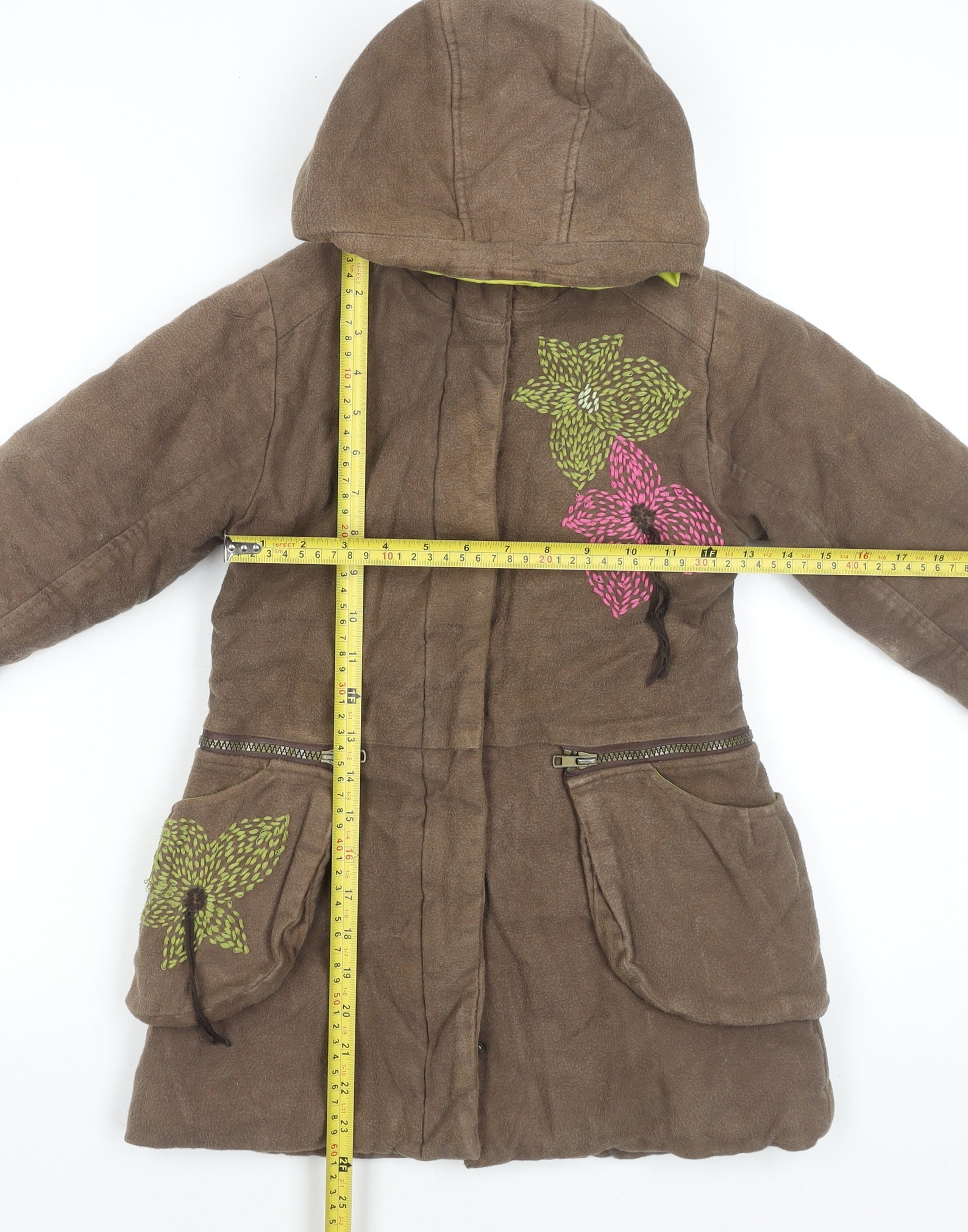 - Features: HoodedLinedPocketsZipEmbroidery