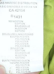 - Material Breakdown: 100% Cotton (Outer) 65% Polyester 35% Cotton (Lining) 100% Polyester (Padding)