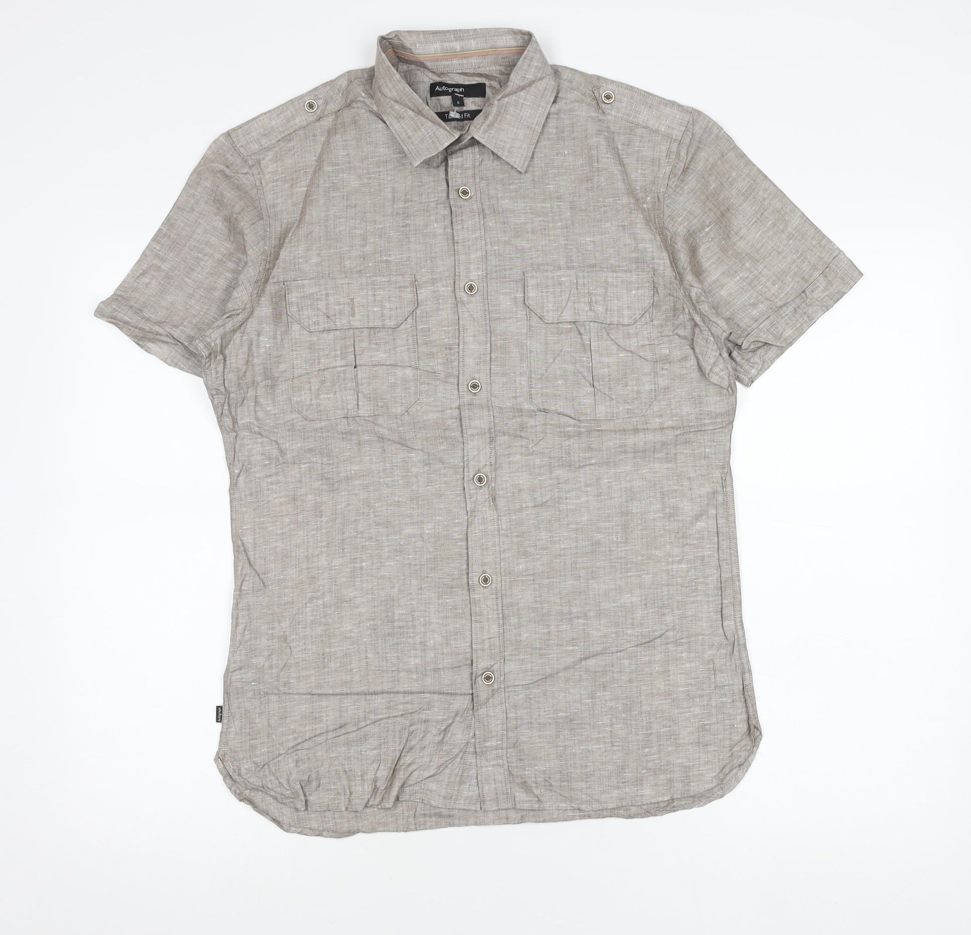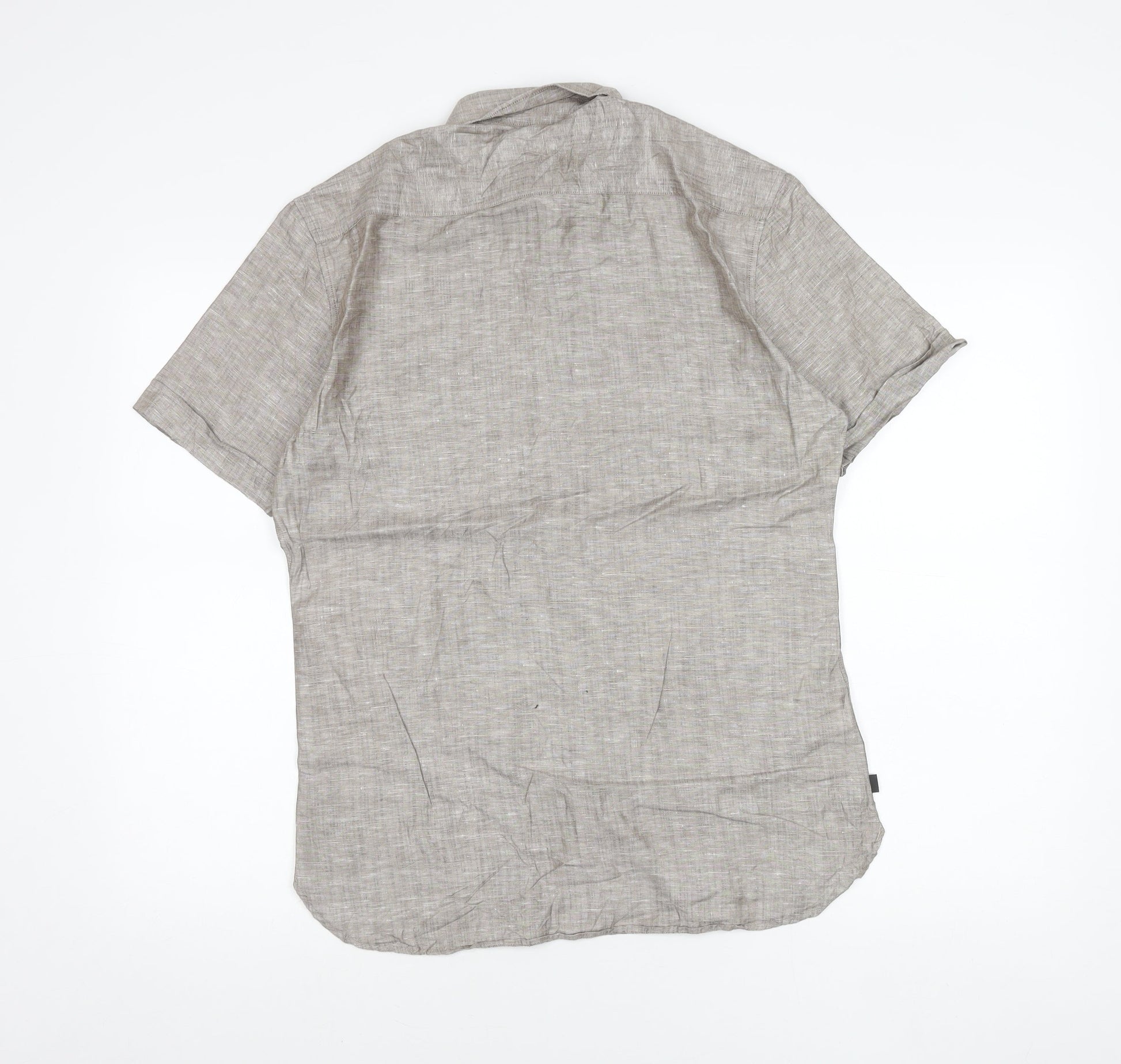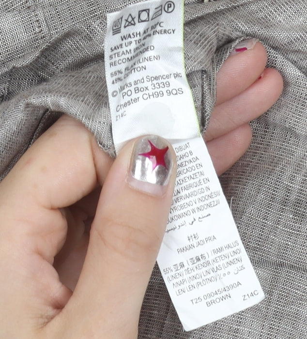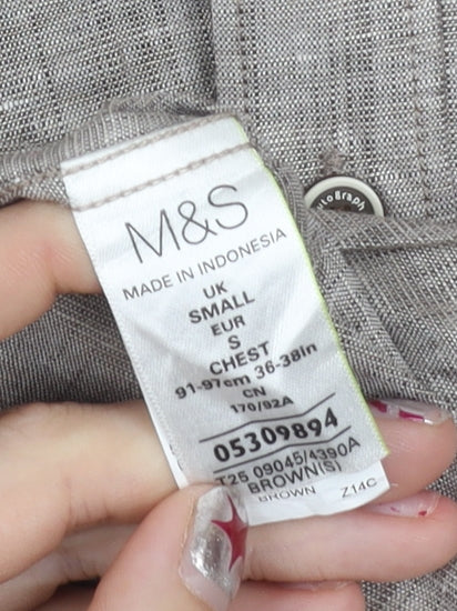 Marks and Spencer Autograph Men's Brown Linen Cotton Slim Fit Short Sleeve Polo Shirt S
