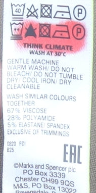 - Material Breakdown: 67% Viscose 28% Polyamide 5% Elastane
