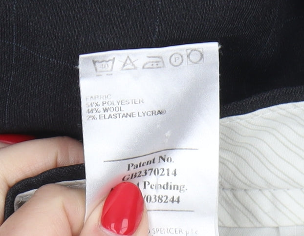 Marks and Spencer Black Check Pleated Dress Trousers - Size 34
