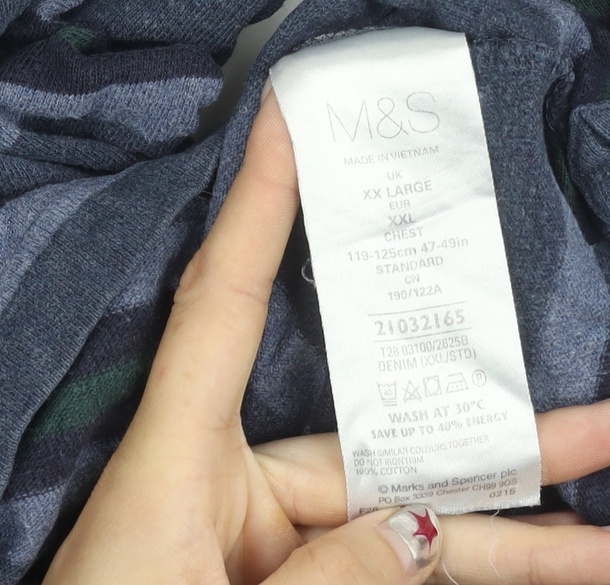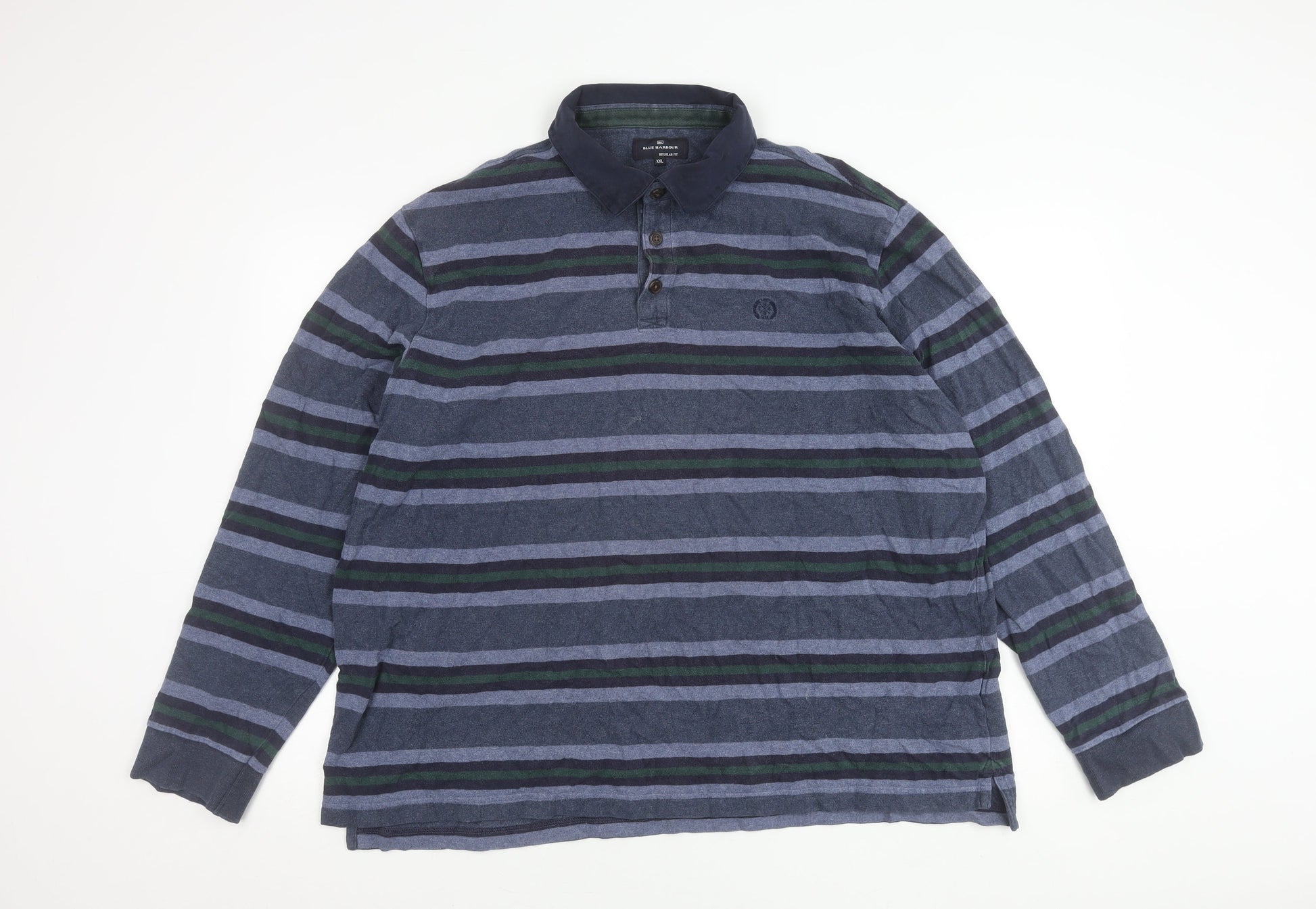 Marks and Spencer Blue Harbour Men’s 2XL Striped Long Sleeve Polo Shirt