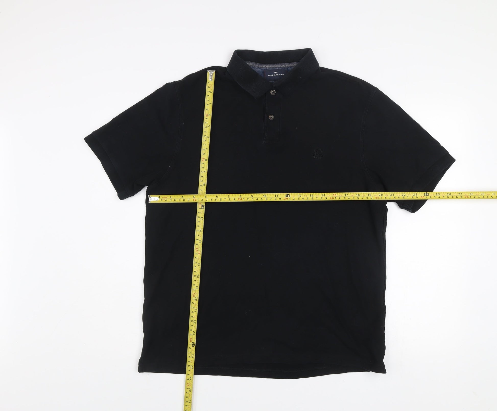 Marks and Spencer Blue Harbour Mens Black Polo Shirt L Regular Fit 100% Cotton