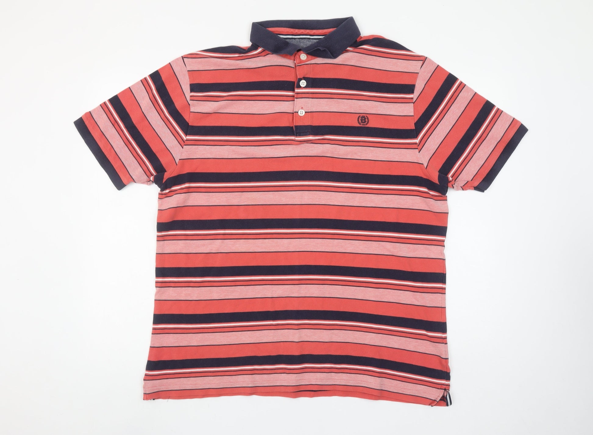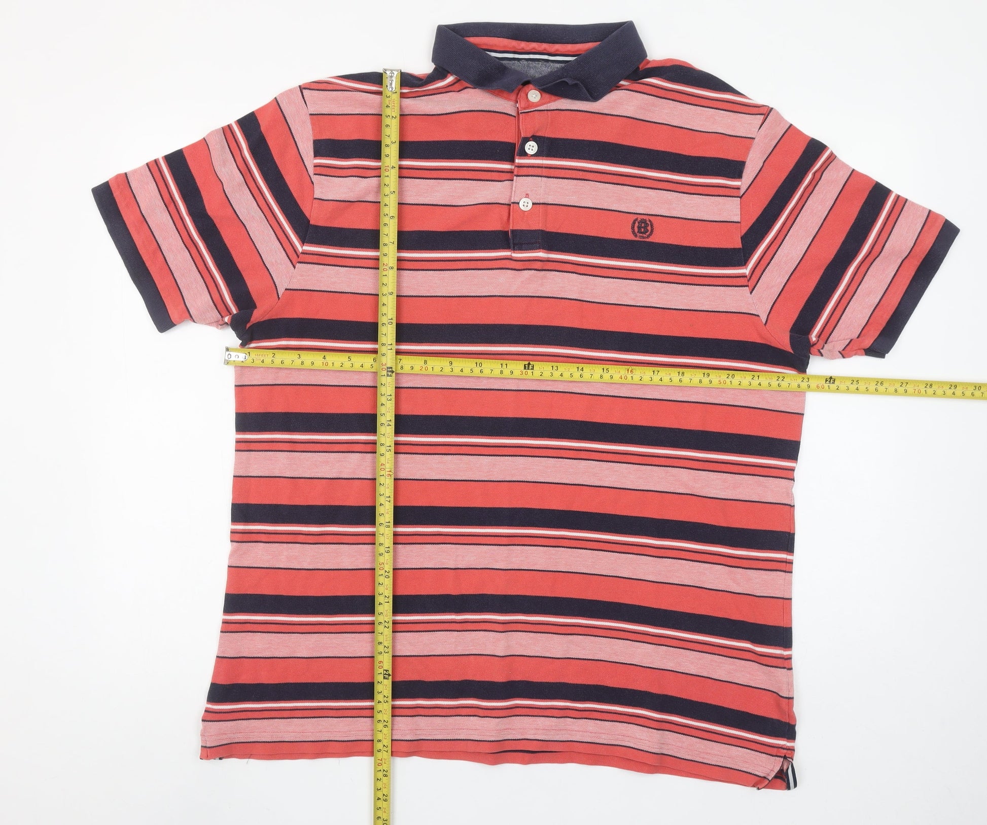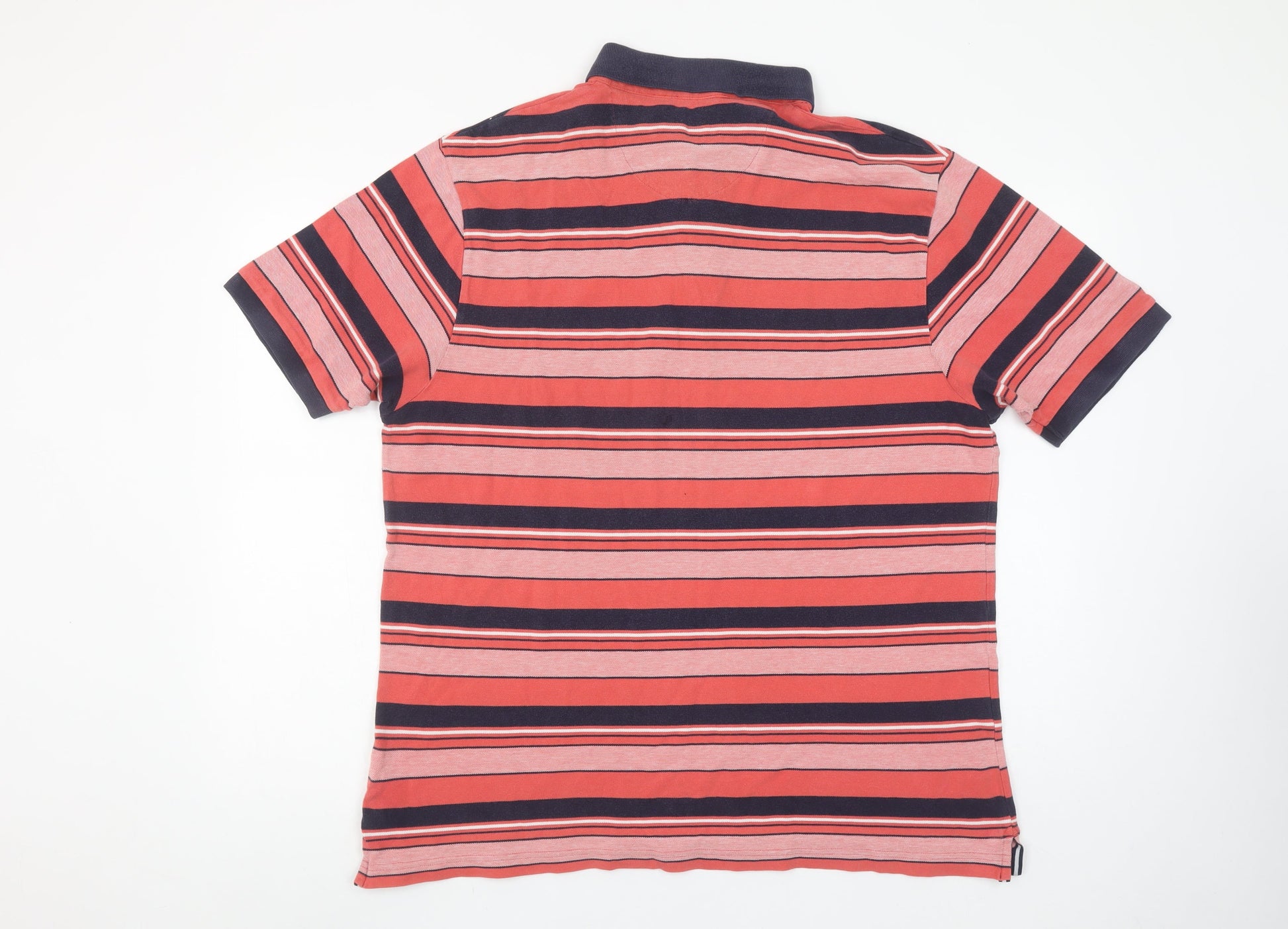 Marks and Spencer Blue Harbour Men's Red Striped Polo Shirt XL Cotton