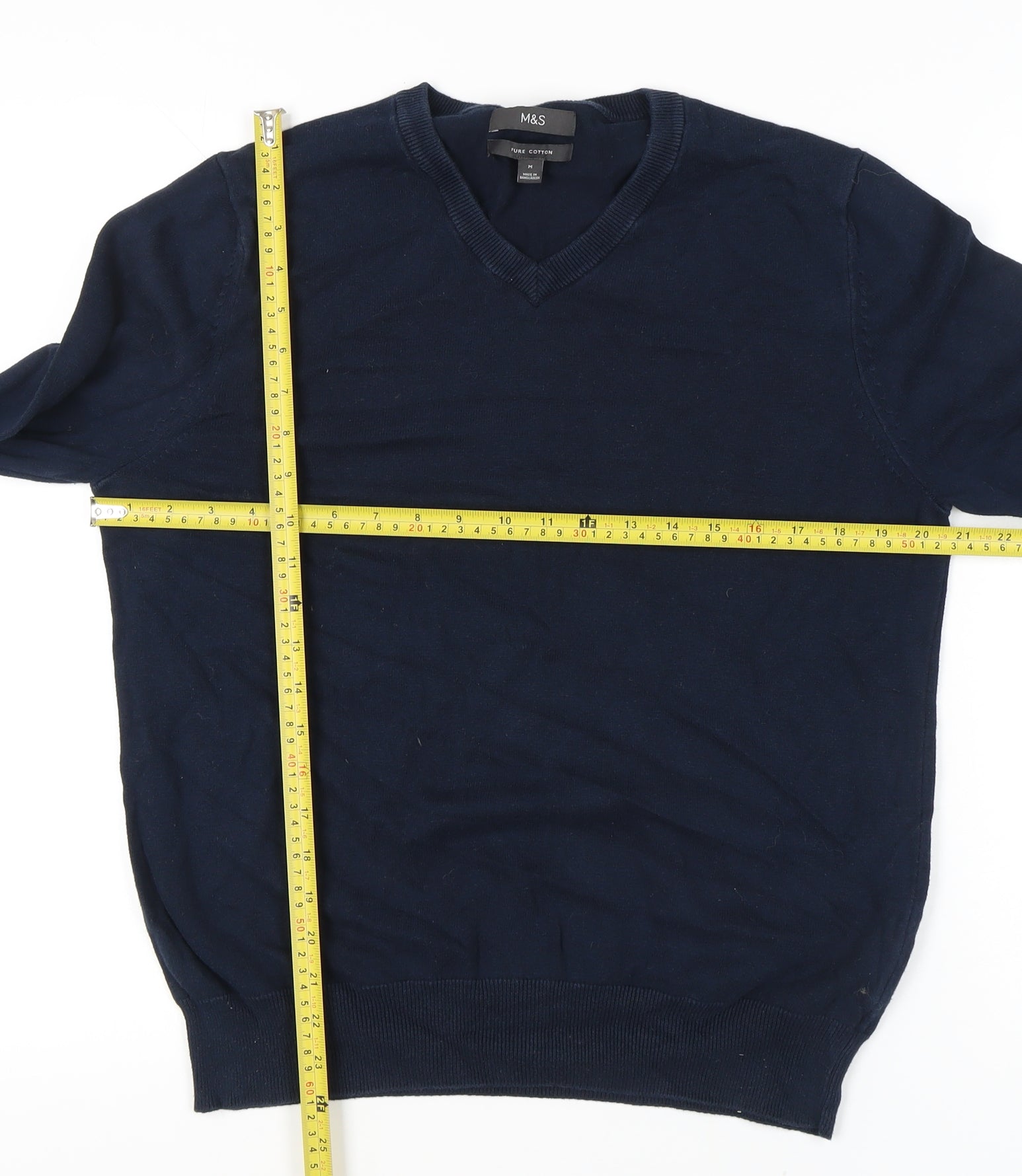 Marks and Spencer Blue Men's V-Neck Pullover Jumper M