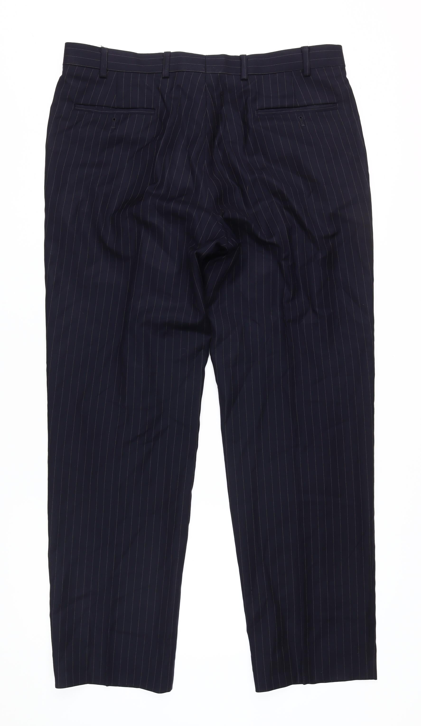 Marks and Spencer Blue Striped Men's Wool Trousers, 36