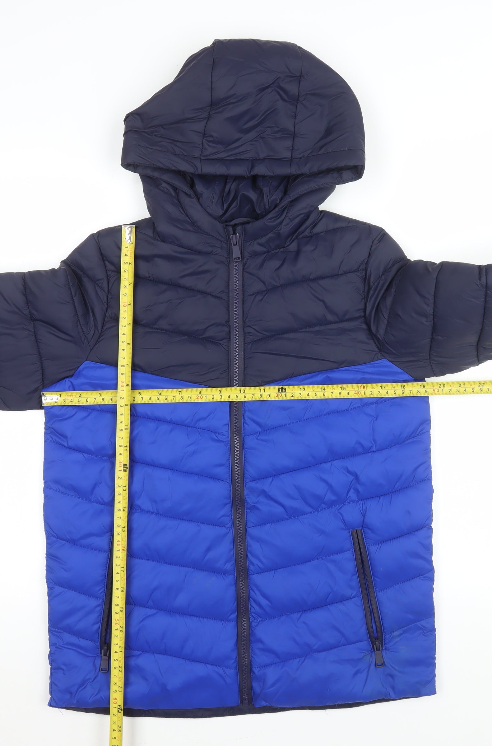 Marks and Spencer Boys Blue Hooded Puffer Jacket 12-13 Years Water Resistant
