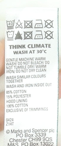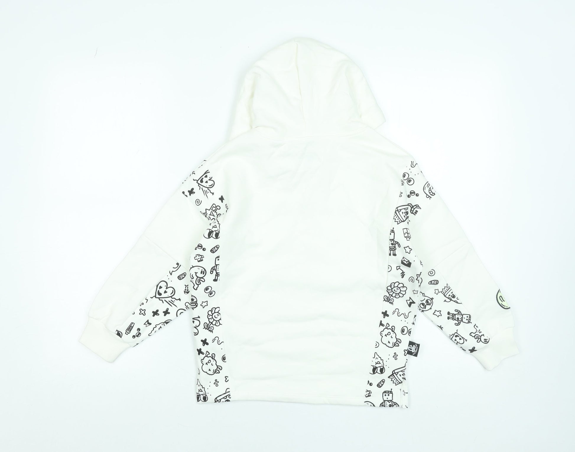 Marks and Spencer Boys White Graphic Pullover Hoodie 7-8 Years Cotton Blend