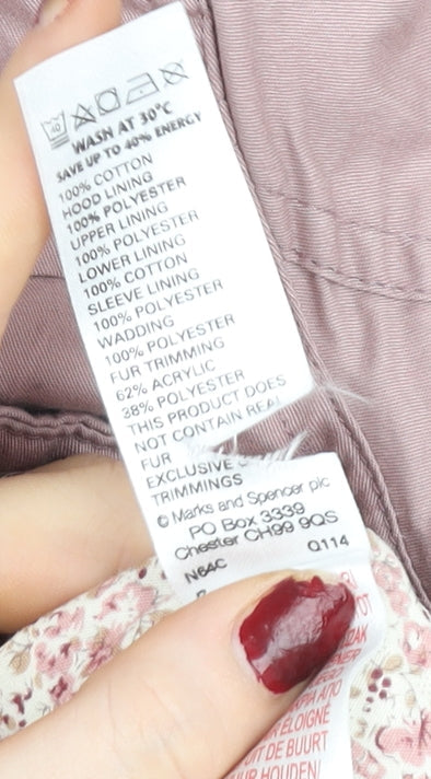 Marks and Spencer Girls Dusky Pink Hooded Parka Coat 12-18 Months