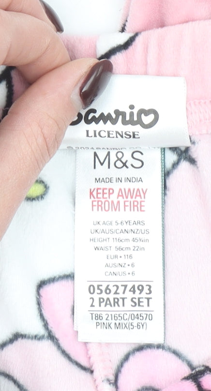 Marks and Spencer Girls Pink Hello Kitty Pyjama Pants 5-6 Years Fleece