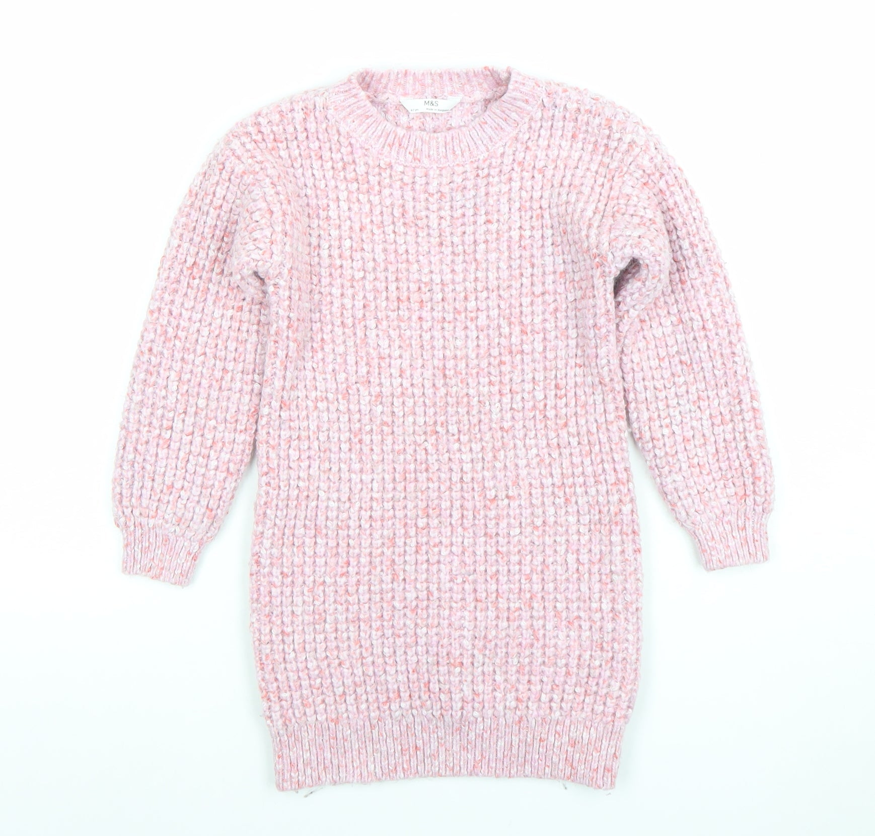 Marks and Spencer Girls Pink Knit Long Sleeve Pullover Jumper 6-7 Years
