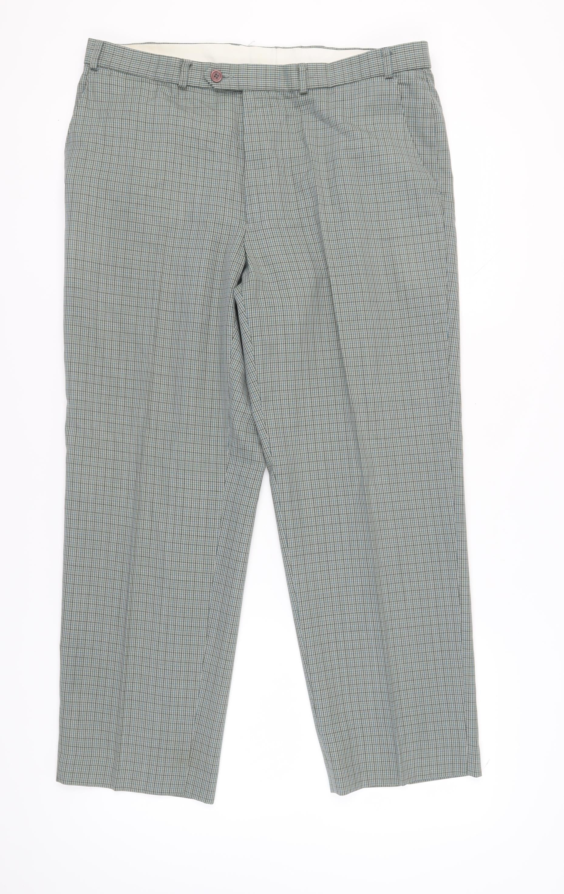 Marks and Spencer Green Check Pleated Trousers 38 Waist