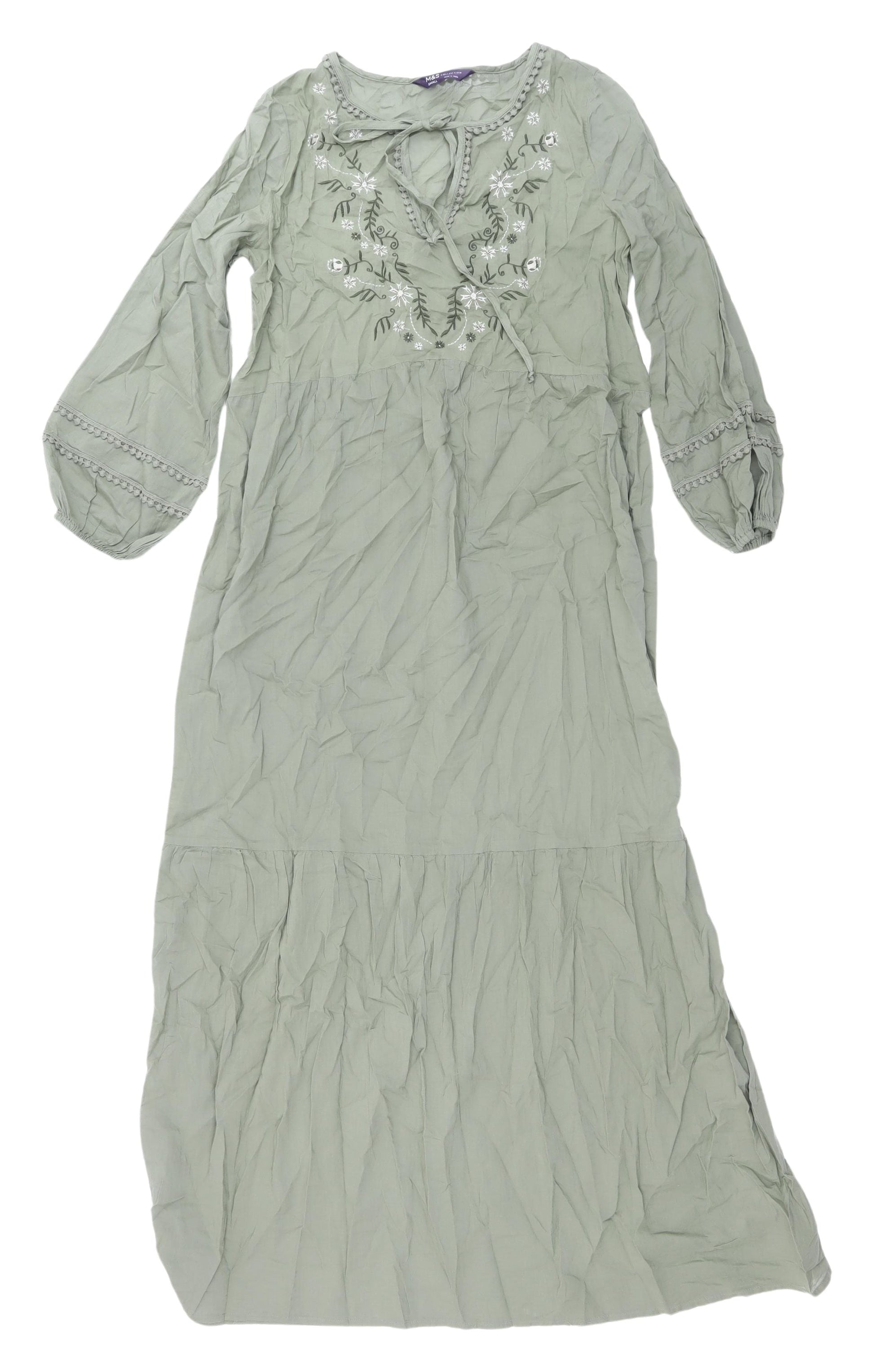 Marks and Spencer Green Embroidered Kaftan Dress