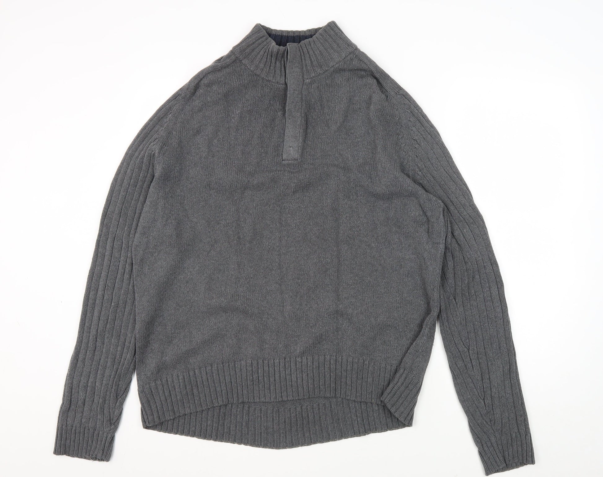 Marks and Spencer Grey Mock Neck Cotton Jumper Large