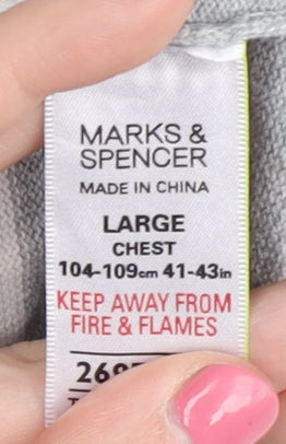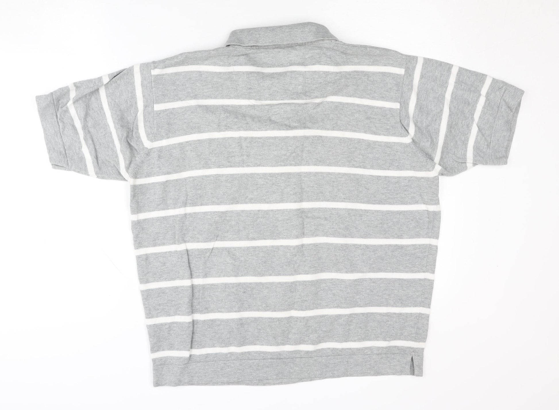 Marks and Spencer Grey Striped Mens Polo Shirt L