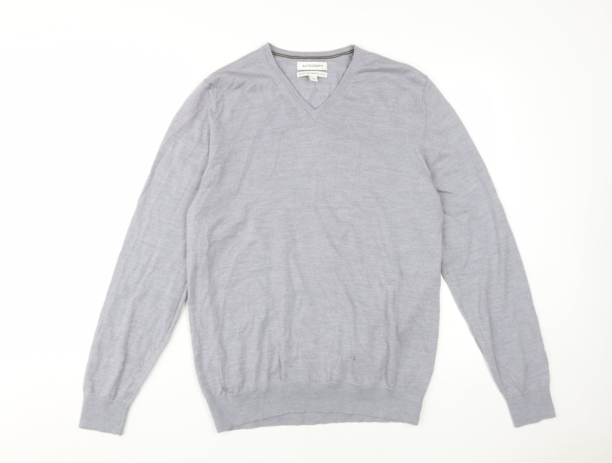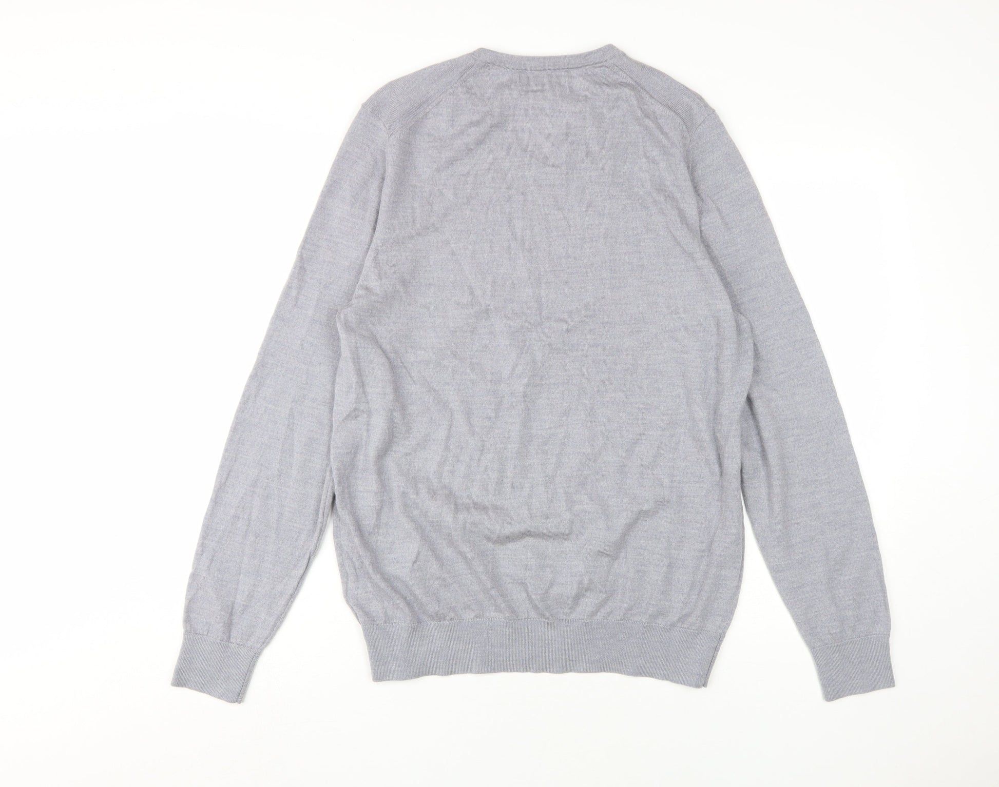 Marks and Spencer Grey V-Neck Men's Wool Pullover Jumper