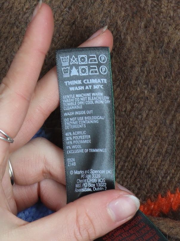 Marks and Spencer Men Brown Argyle Knit Jumper Size S Wool Blend