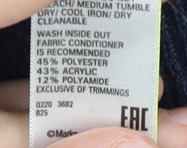 - Material Breakdown: 45% Polyester 43% Acrylic 12% Polyamide