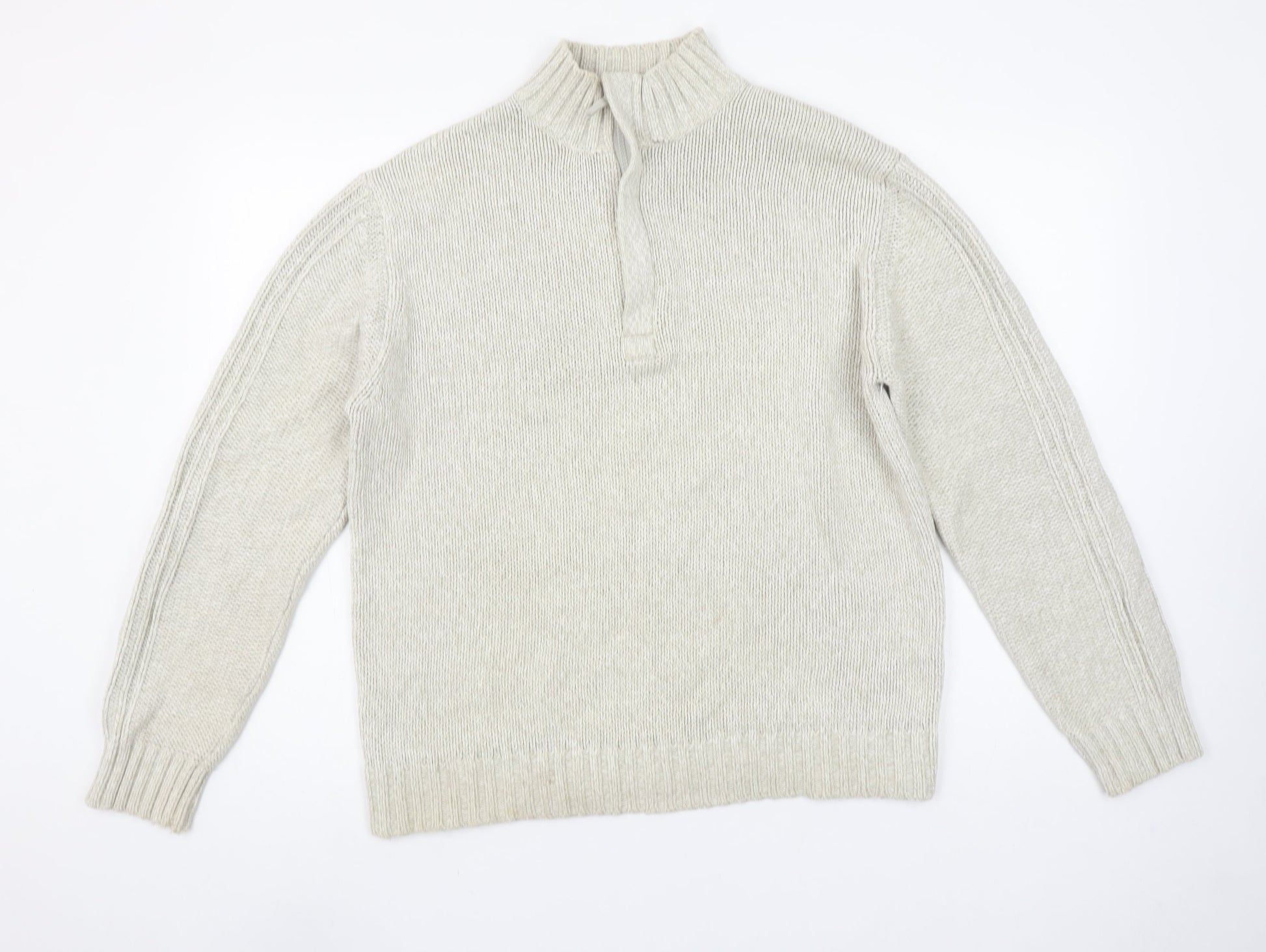 Marks and Spencer Men’s Beige Cotton High Neck Henley Jumper M