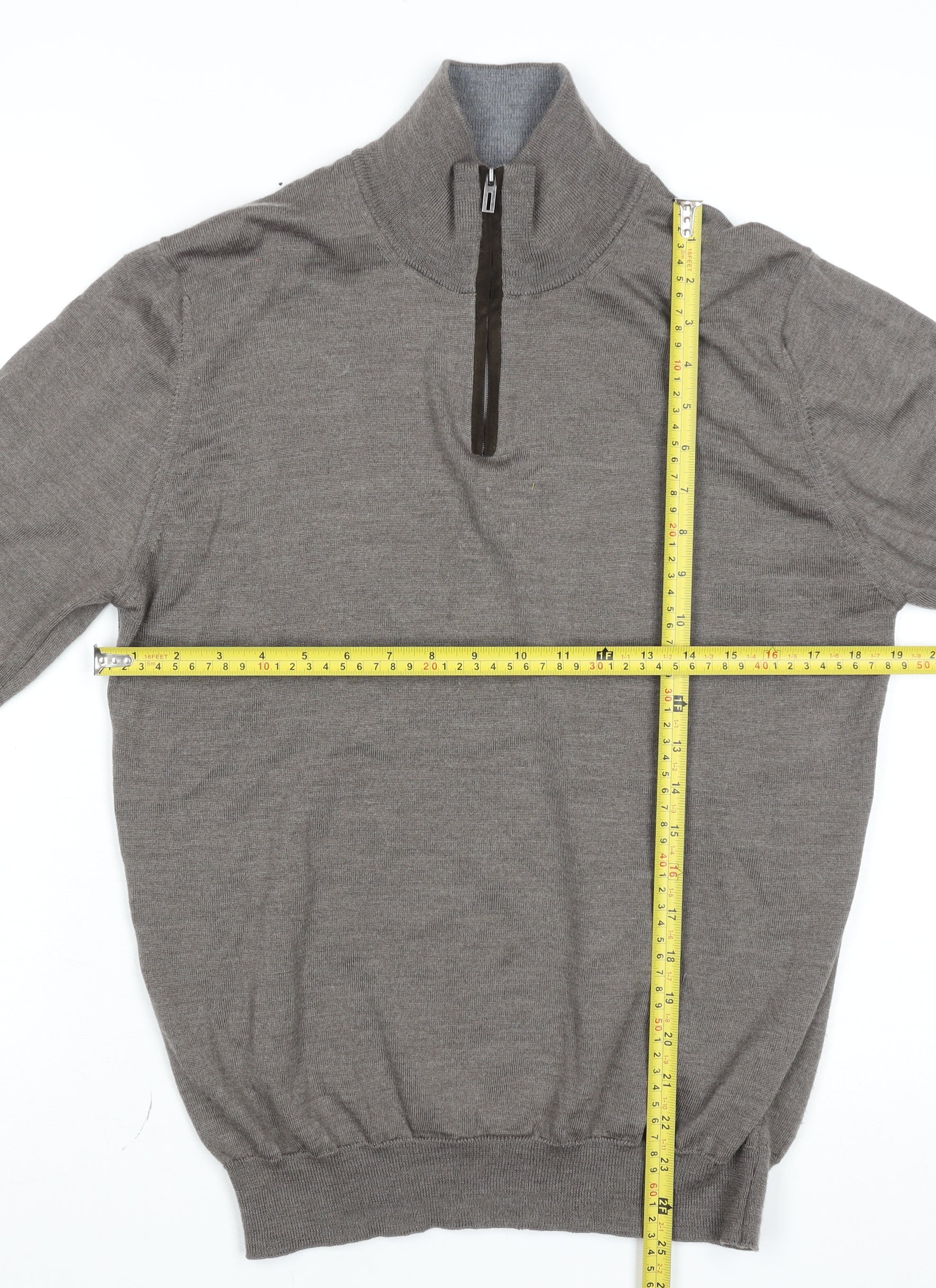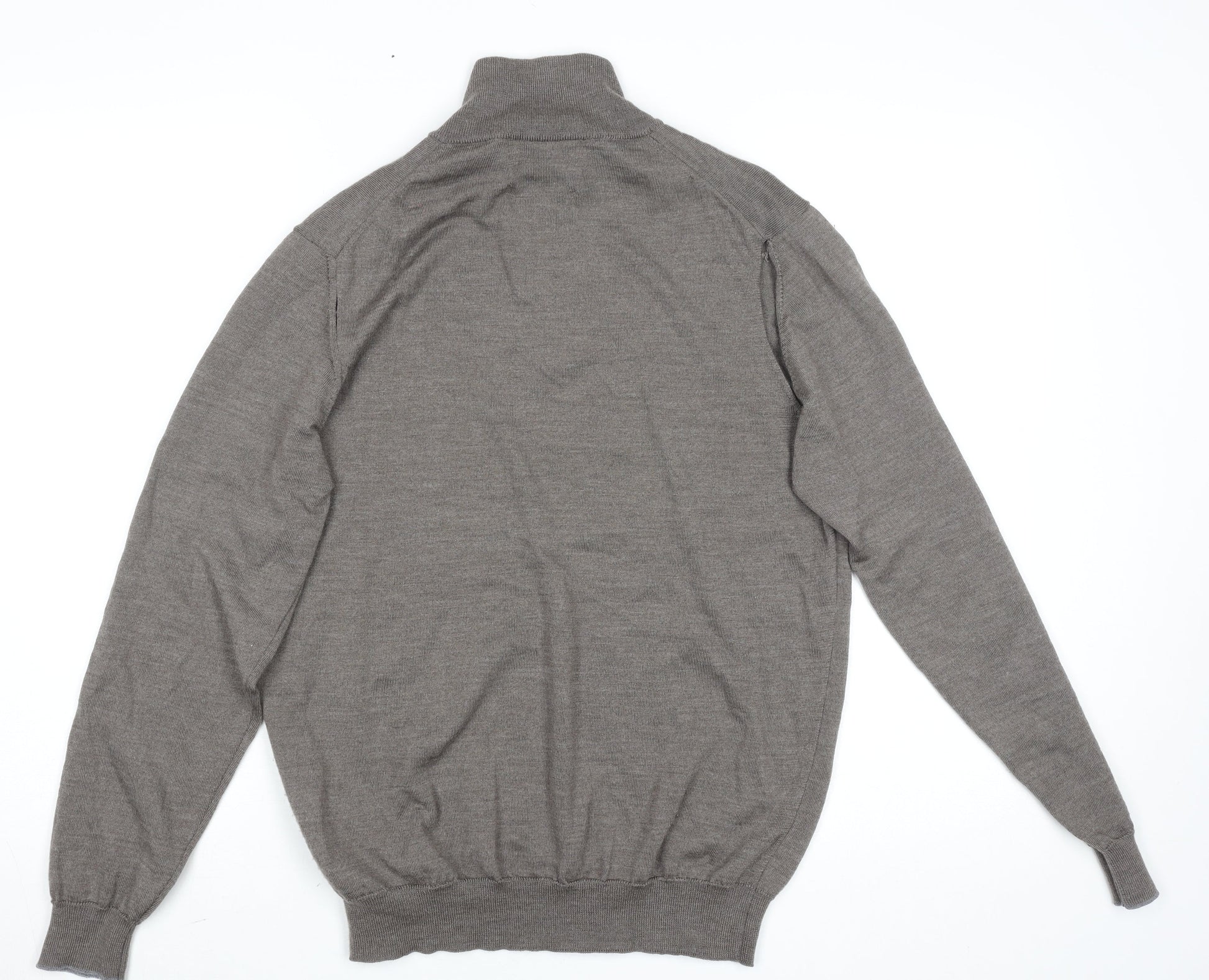 Marks and Spencer Men’s Beige Merino Wool Half Zip Jumper L Classic Knit