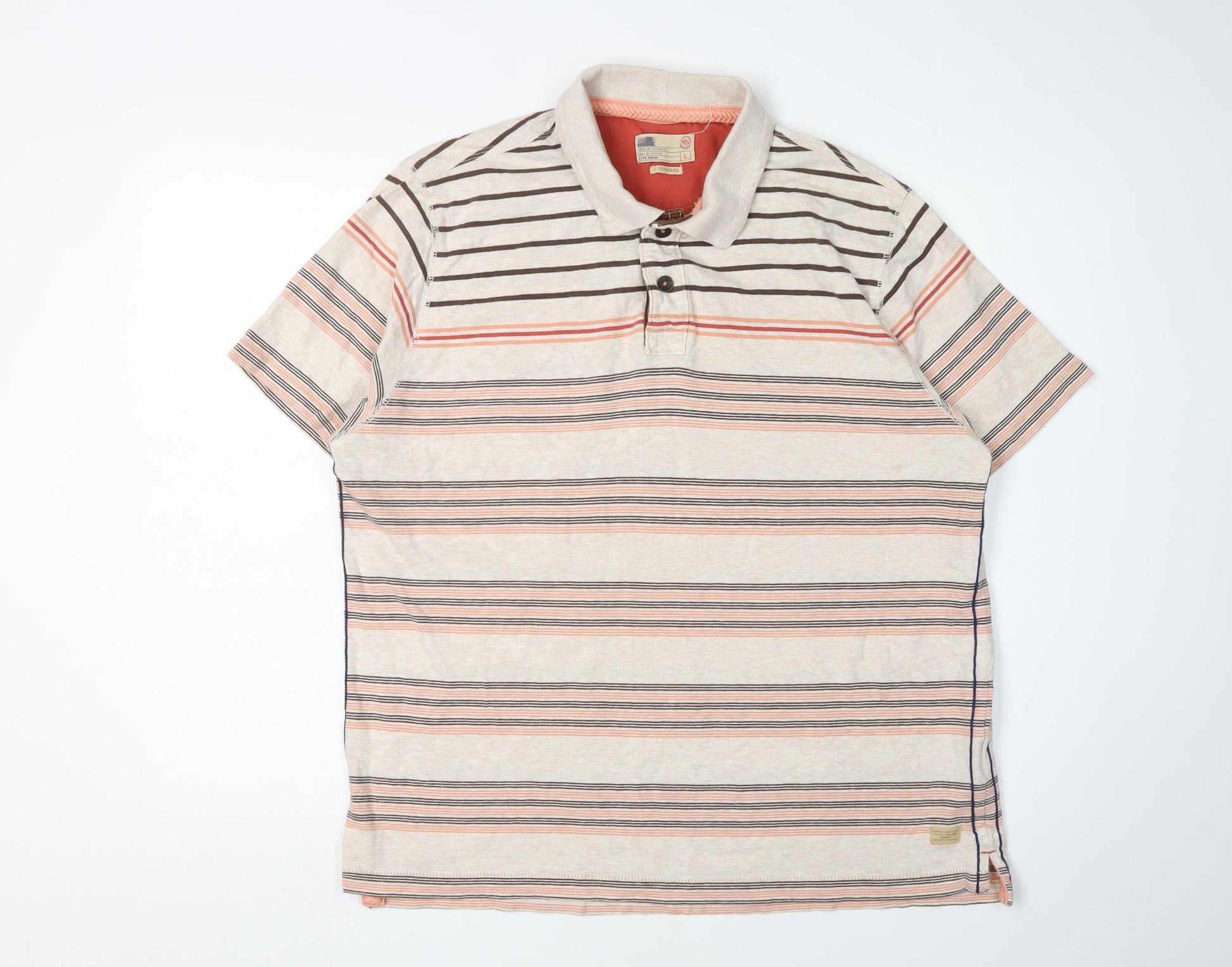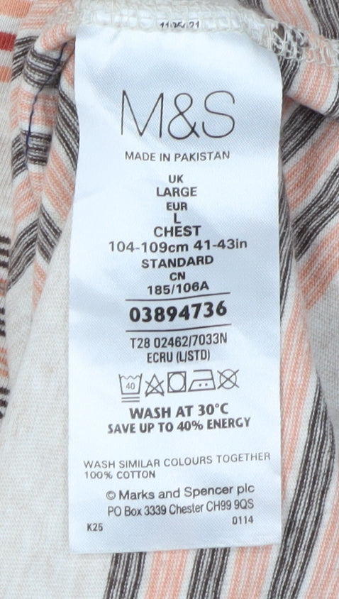 Marks and Spencer Men’s Beige Striped Polo Shirt L