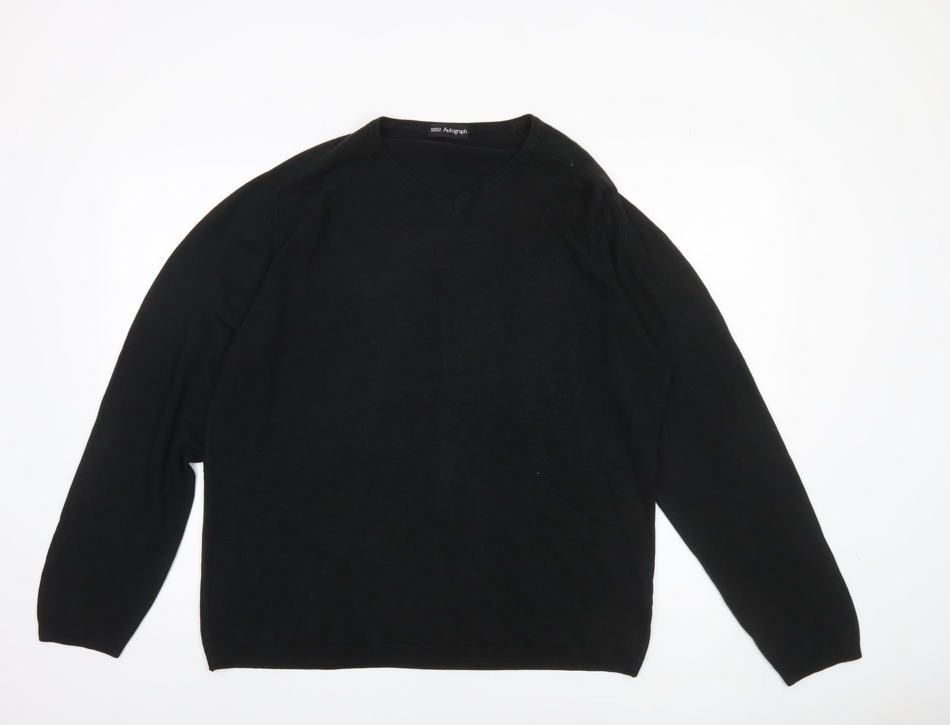 Marks and Spencer Men’s Black V-Neck Jumper XL Acrylic Knit